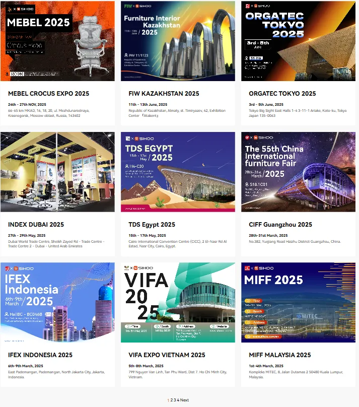 相比只做线上投流的品牌,西昊更进一步的地方在于,它持续把品牌带进国际家具、办公、空间设计展会。西昊 2024–2025 年密集参加多个国家和地区的展会,包括 波兰 MEBLE POLSKA、越南 VIFA EXPO、迪拜 INDEX DUBAI、东京 ORGATEC TOKYO、芝加哥 NeoCon 等。这说明西昊不是偶发性参展,而是在把展会作为全球市场拓展的一条固定路径。