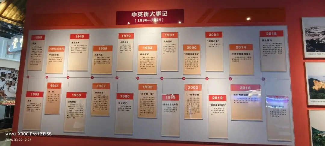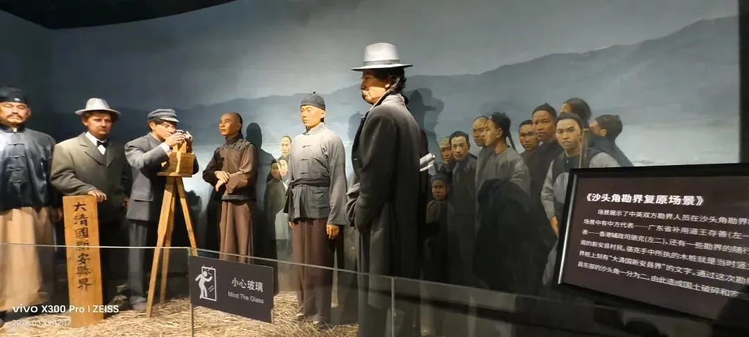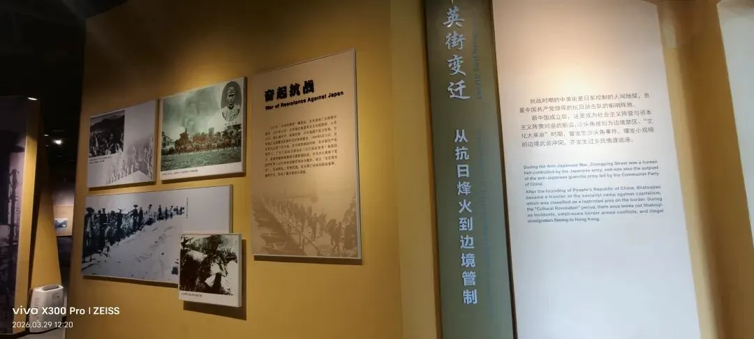 走进中英街历史博物馆,第一眼看到的不是文物,而是一道裂痕。展墙上那张巨大的分割示意图,直接把250米的中英街从中间劈成两半——左“华界”,右“英界”。同一条石板路,同宗同源,却因一纸条约,被硬生生塞进了两种完全不同的命运里。这场展览没有华丽布展,只用老照片、界碑拓片和蜡像场景,把“弱国无外交”五个字,结结实实地砸进你心里。我凑近看1899年勘界的照片,中方代表王存善和英方骆克站在一起,一个面无表情,一个嘴角微抬。界碑上“光绪二十四年中英地界”的字样冷冰冰的,可照片里界碑旁劳作的乡民、嬉闹的孩子,又把宏大的历史摁进最真实的日常——原来撕裂的从来不只是土地,是一家人的饭桌,是祖辈的生计。抗英展区,玻璃柜里的土枪大刀锈得发黑,旁边还摆着几门古炮。看着这些落后装备,我脑子里却是乡民举着它们冲向洋枪洋炮的画面。展板上那句“虽落后却滚烫”,真不是夸张,是命拼出来的血性。抗战时期的铁丝网照片,把街巷切成了格子。宵禁、岗哨、搜查,成了最寻常的日子。墙上的日军暴行史料,字小得像针,扎得人眼疼。但黑底白字里总冒出东江纵队的影子——他们在这条街上传递情报、组织抵抗,烽火就从未在这片土地熄灭过。我最久停在“界河相会”的蜡像前。老人隔着铁丝网伸手,小孩踮脚够,就差那么几厘米碰不到。“祖孙隔河相认”,可我总觉得,他们在认的是本该在一起、却被割裂了几十年的光阴。1978年的春风吹过来,红色展板上“迎来春天”四个字亮得晃眼。老照片里,人潮涌进中英街,大包小包的游客、琳琅满目的港货,让曾经的边界线,变成了闻名全国的“购物天堂”。我看着那些笑脸,突然懂了什么叫“壁垒松动”——不是墙塌了,是人走了过去。1997年的回归史料旁,放着现代中英街的街景照:商铺照样热闹,但界碑从“分隔符”,变成了守护历史的“文物”。最后在东和学校的百年书声、沙头角民俗展板前走一圈,再回头看门口,我发现这馆虽小,却把百年的悲欢离合,捋得清清楚楚。