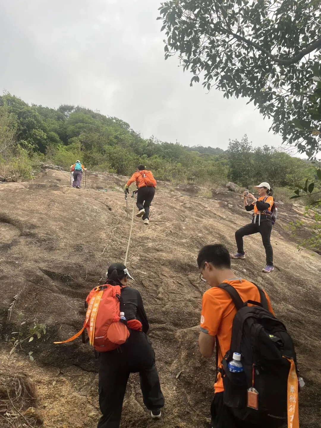 从YK292开始,连续两公里以上的爬升让每个人心跳加速。途中两块大石需要徒手攀越,“有些困难”,但没有人退缩。