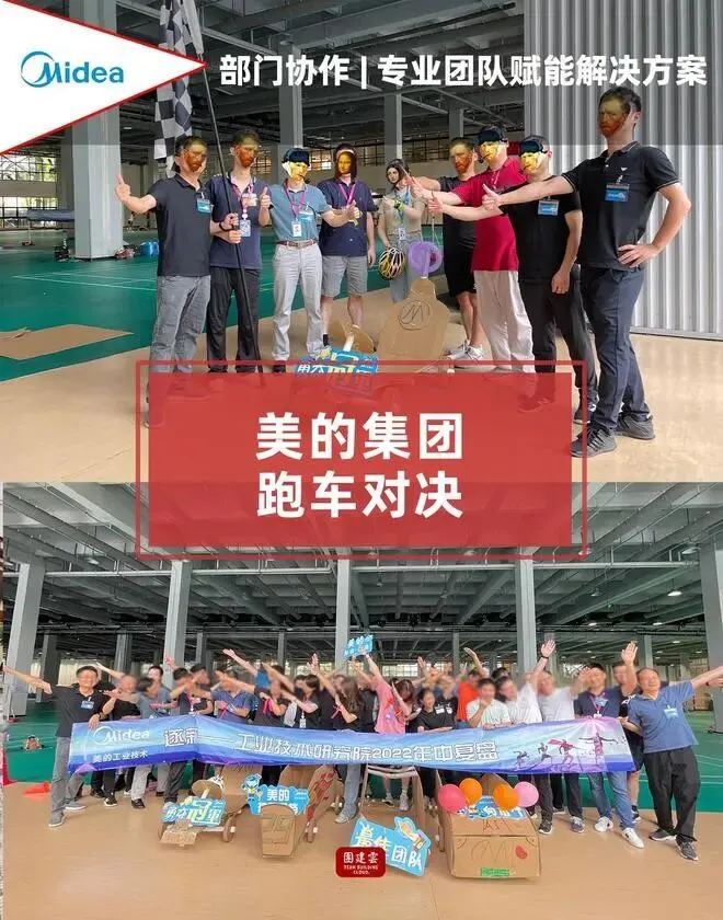 团建云 x 美的集团为美的集团打造F1赛车搭建团建,参与者协作利用现有物料搭建赛车,合力达成团队目标,增强解决问题的勇气,提升凝聚力与荣誉感。-