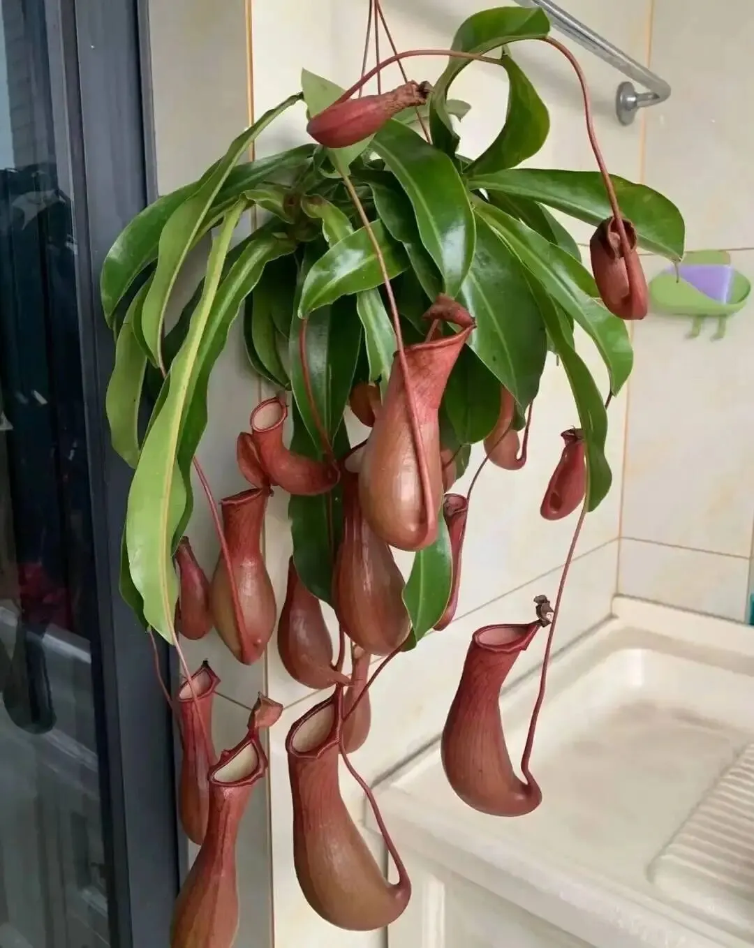 不过也不是所有植物都能往里塞。像猪笼草这种,很多人看着很酷,觉得丢进卫生间肯定绝配。实际上它喜欢高湿没错,但对光照、通风、介质都有要求,伺候不好,分分钟从“猎手”变“挂件”。