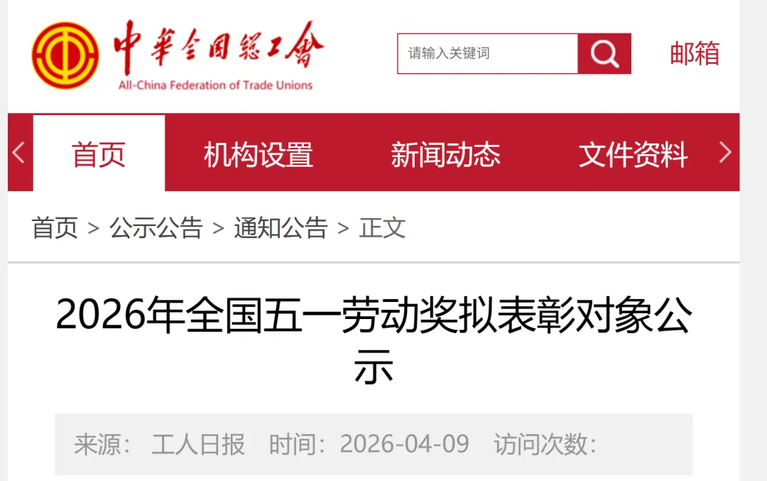 南方医+1(深圳眼科) | 2026年全国五一劳动奖拟表彰对象公示