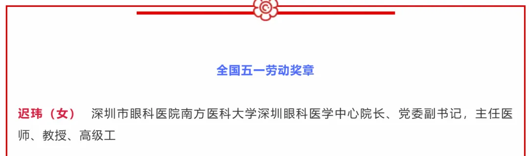 >南方医+1(深圳眼科) | 2026年全国五一劳动奖拟表彰对象公示
