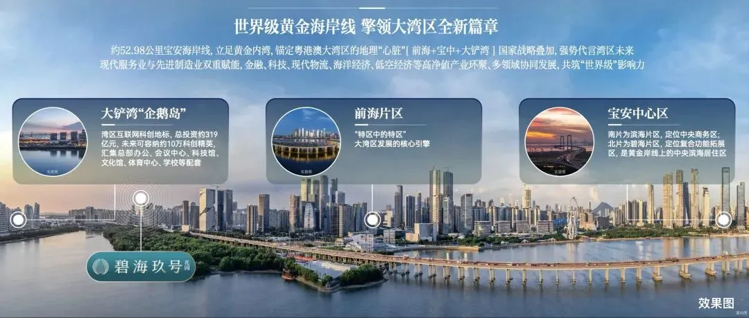大湾区黄金内湾C位,「前海+宝中+大铲湾」国家战略叠加,坐享世界级科创繁华,打造湾区国际会客厅。