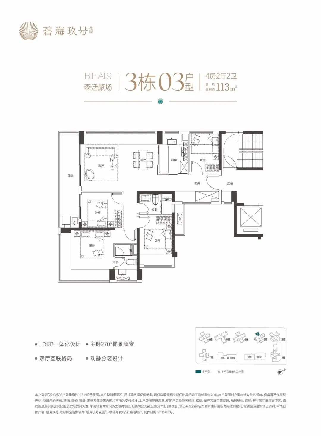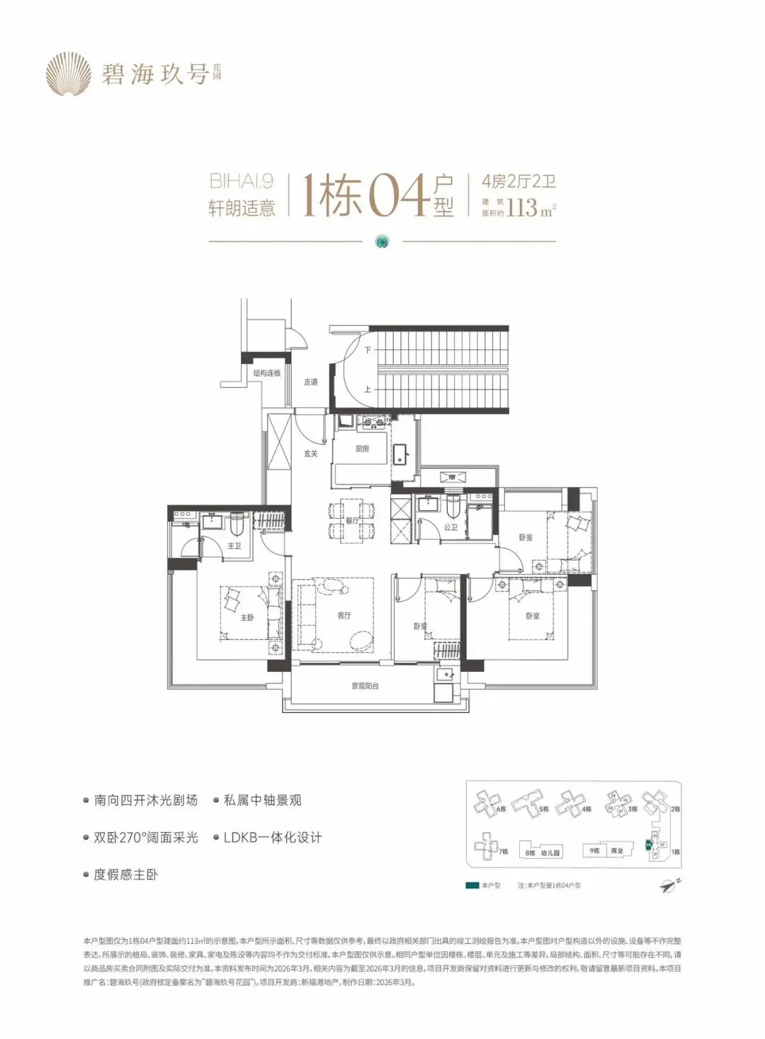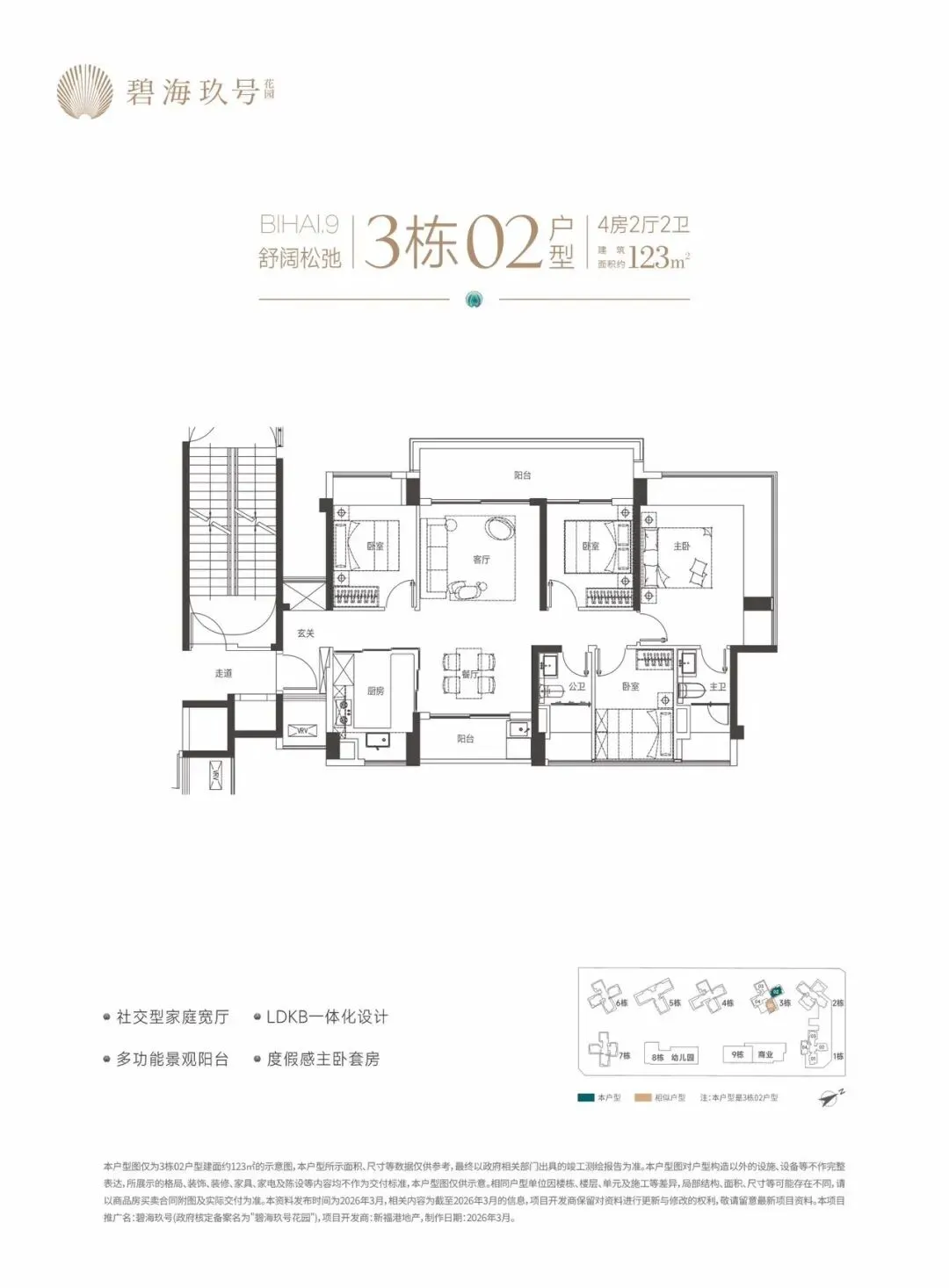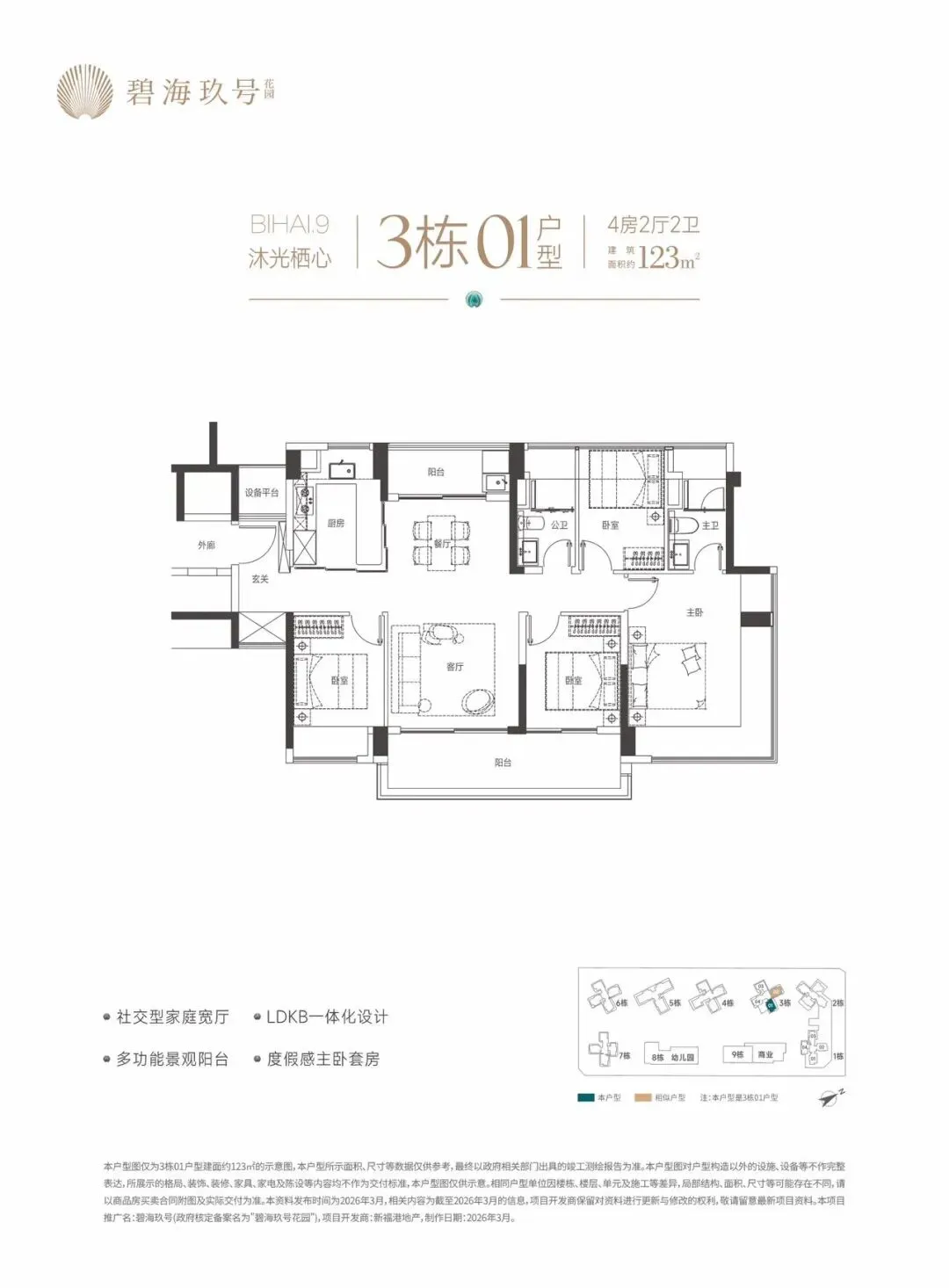 特别说明:本宣传资料为要约邀请,不构成要约和承诺。所示内容仅供参考,一切内容以政府最终批准文件、买卖合同及补充协议为准,如有变化恕不另行通知;本宣传资料文字、图片所表述的内容与实际可能存在一定差异;本宣传资料文字、图片所示内容在建设过程中可能会因政府及其下属单位或公共事业单位的要求等原因而变更;本宣传资料对项目周边环境、交通、商业、公园、医院、文化设施及其他公共设施的介绍,仅供参考,一切以政府相关文件及实际情况为准;本宣传资料关于项目的学区划分和学位申请条件以政府教育主管部门和相关学校的最终文件为准,本公司对此不作承诺,关于学区划分和学位申请的条件须前往主管部门及学校进行咨询。敬请阁下在选择购买房屋前,亲临现场,对周边环境仔细考察后再做购买决策;本公司保留对本宣传资料修改的权利,敬请留意最新资料。项目推广名:碧海玖号,备案名:碧海玖号花园,项目开发公司:深圳市锦新明集团有限公司。制作时间2026年4月。