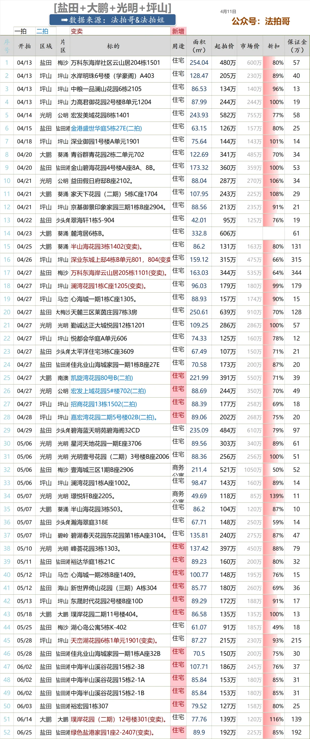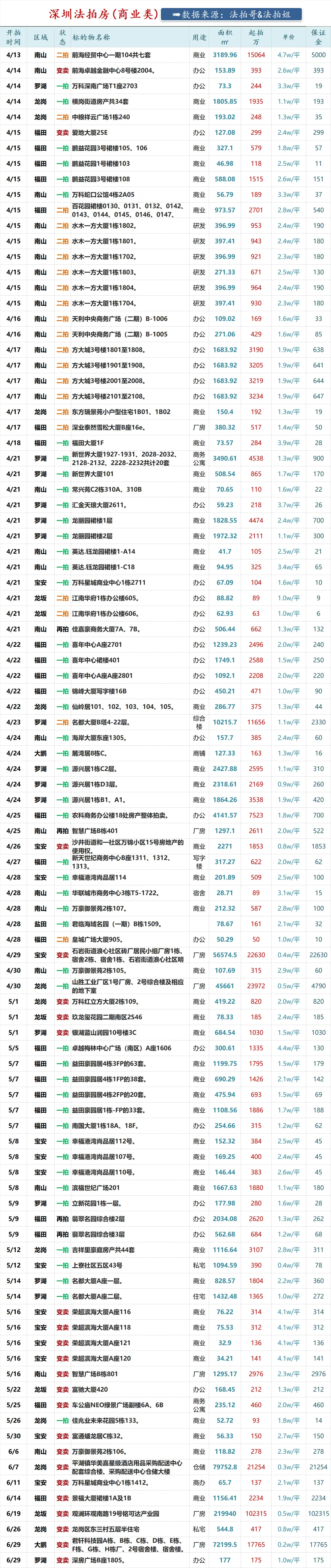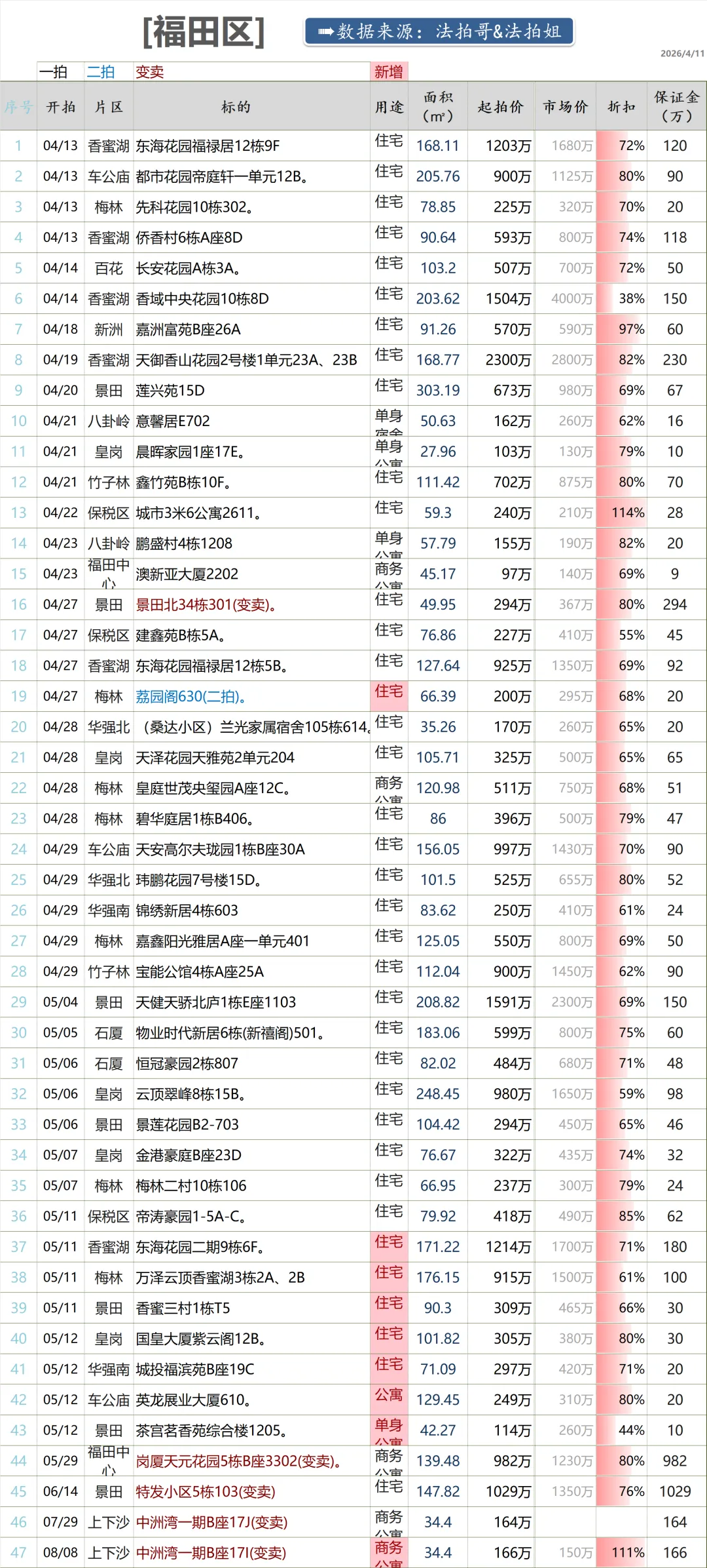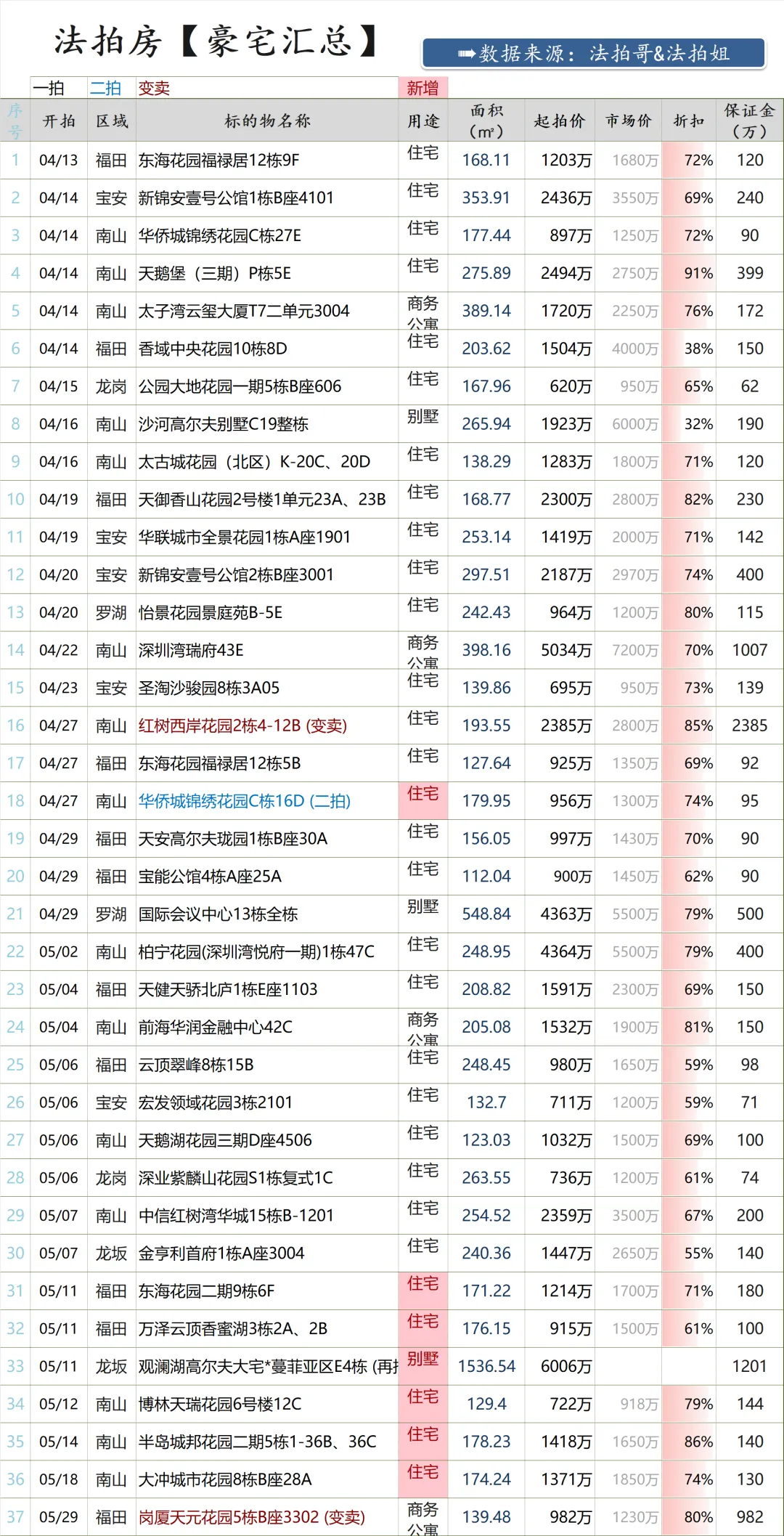 深圳市法拍房(拍卖房)本周成交汇总一览表
