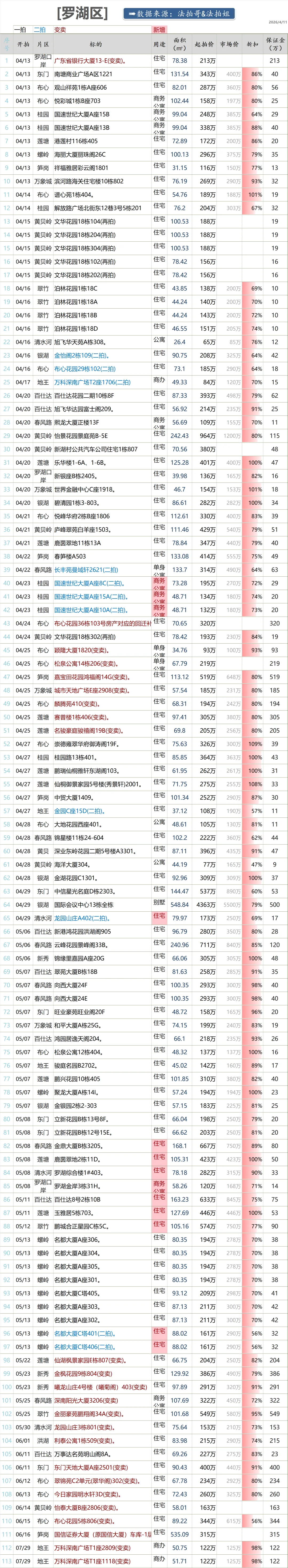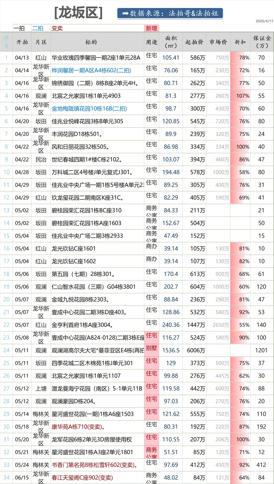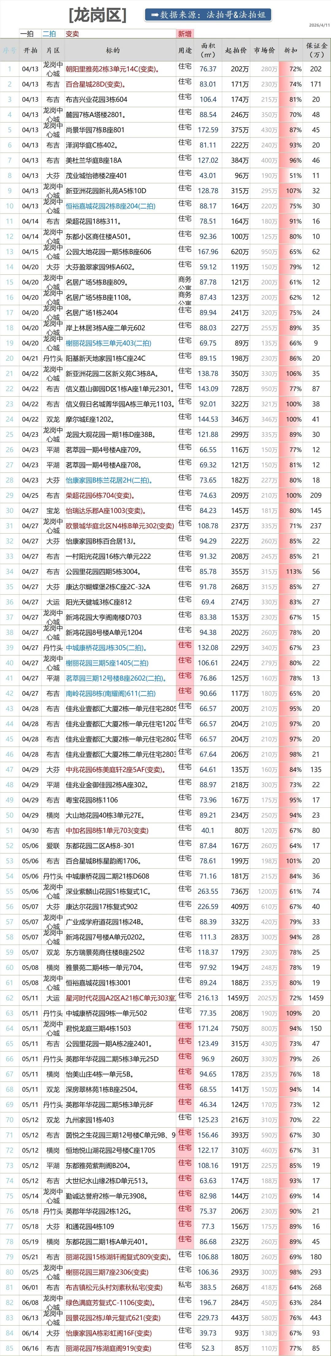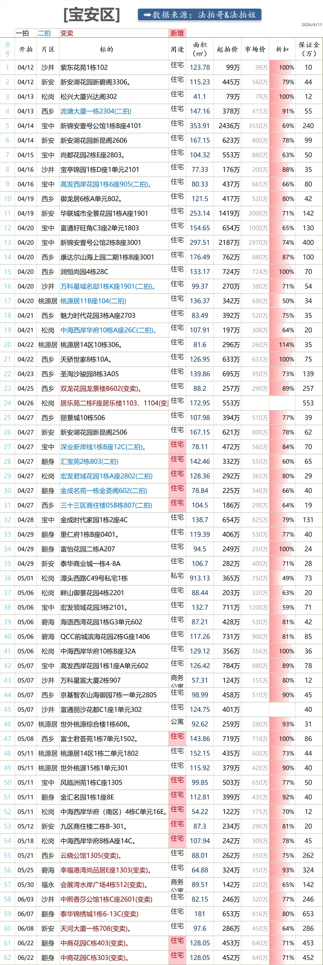 深圳市法拍房(拍卖房)本周成交汇总一览表