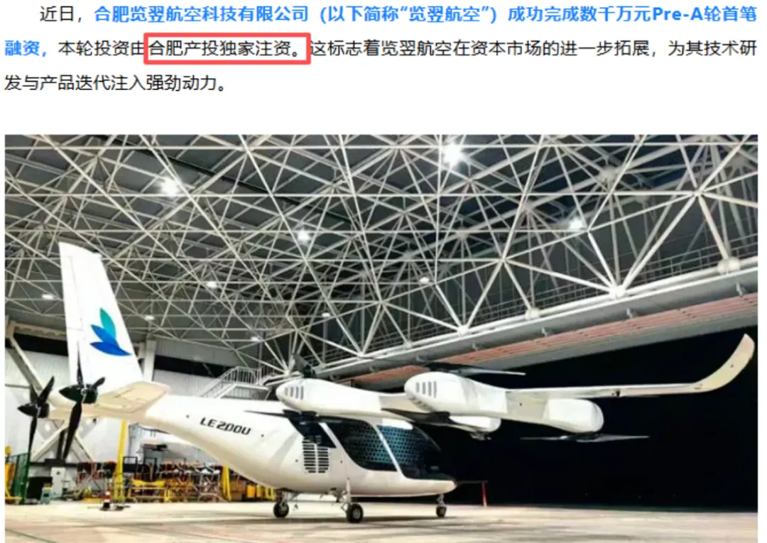 合肥国资平台以“投行思维”精准布局:与亿航智能深度绑定,成立合资公司、建设制造基地,推动其eVTOL实现“三证齐全”;独家注资览翌航空,多轮加注零重力,形成“投企业、建链条、兴产业”的格局,用国资撬动产业发展。