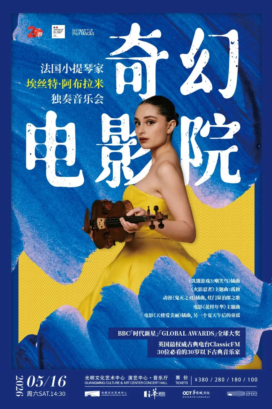 5月16日,法国小提琴家埃丝特·阿布拉米( Esther Abrami)将带来一场松弛感拉满的演奏《奇幻电影院》,作为2026年“中法文化之春艺术节” 的系列活动,这场小提琴音乐会将告诉你:你的热爱,值得被世界听见!