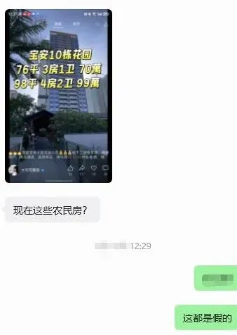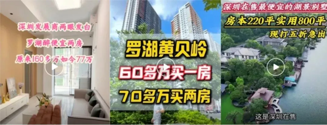 还有下面这种,用上海房产博主与业主交谈对话的视频,贴深圳的楼盘信息。