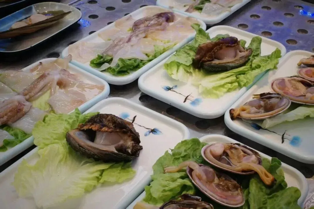 汤底可选性超全,白粥、冬阴功、麻辣、番茄应有尽有,但懂行的本地人都选白粥底——清润绵长,涮海鲜简直是绝配,能最大程度凸显食材本身的鲜。食材区足足有100多种选择,自己拎筐挑选,像逛超市一样自在,现捞现切的海鲜明码实价,按碟收费,不用担心被坑。
