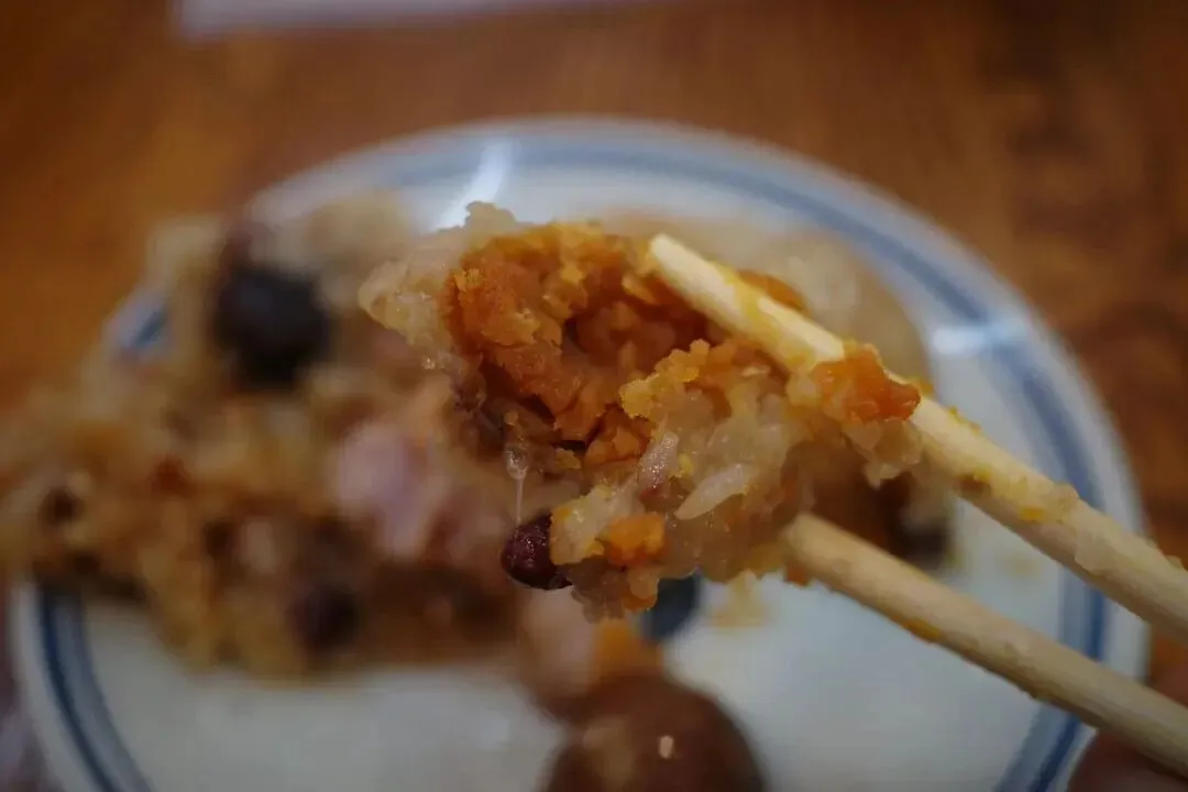 来这里不用纠结菜单,跟着本地人点准没错。蛋黄板栗咸肉香菇粽一定要试,趁热剥开,荷叶和糯米的香气瞬间弥漫,掰开后料足到惊人:起沙流油的咸蛋黄、粉糯绵密的板栗、肥瘦相间的咸肉、吸饱油脂的香菇,每一口都能尝到多重风味,糯米软烂入味,咸香中带着清甜,一个就能吃到半饱。