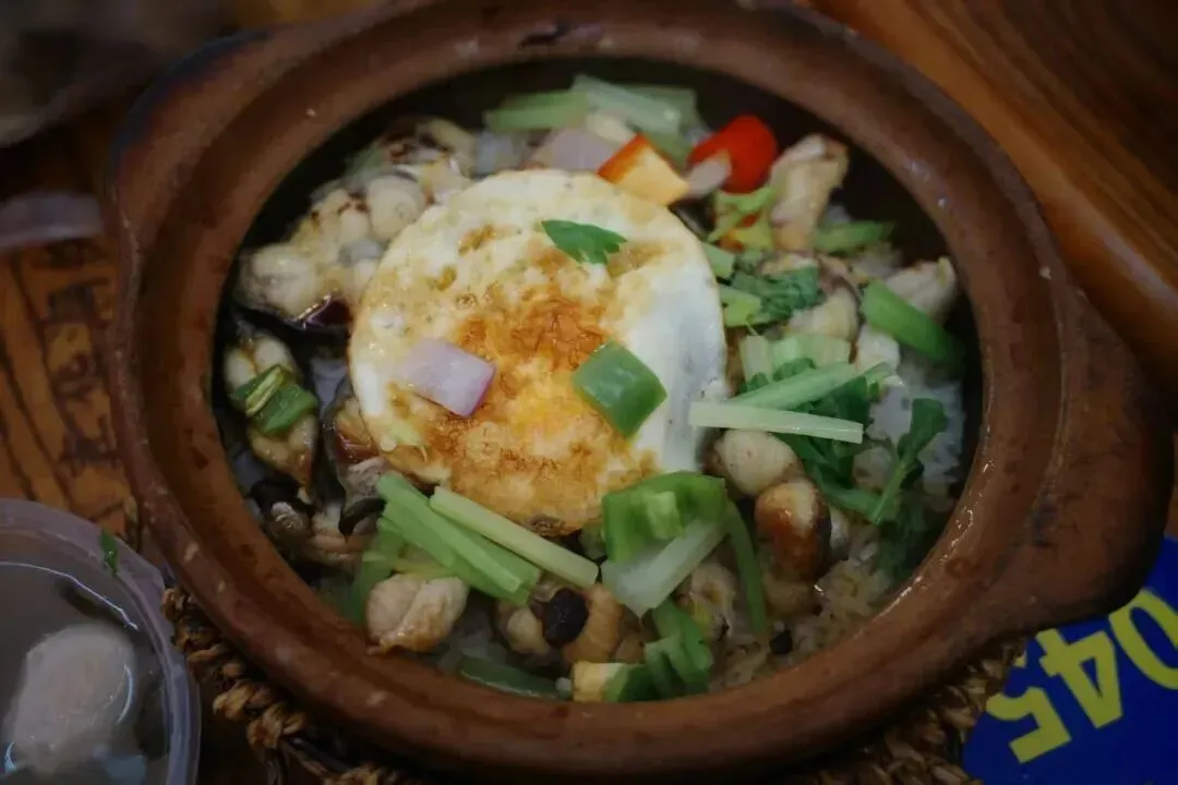 白鳗鱼煲仔饭也不容错过,上桌时还在滋滋作响,焦香的锅巴味先声夺人。鳗鱼处理得干干净净,没有一丝腥味,肉质细嫩,裹着浓郁酱汁,和米饭拌匀后,每一粒米都吸饱了鲜味,底下的锅巴焦而不糊,脆香可口,是煲仔饭的灵魂所在。