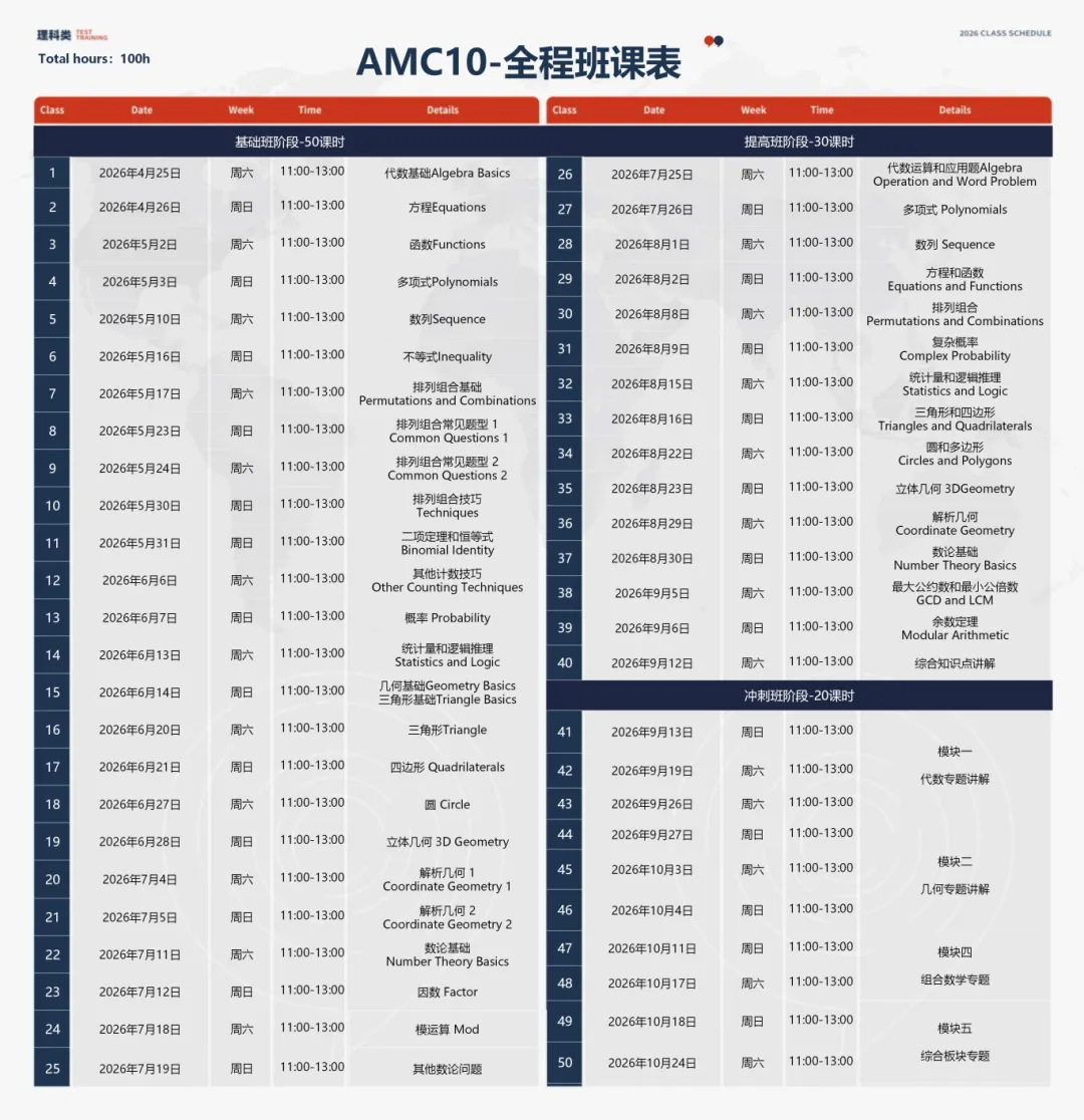 AMC10全程班:100h