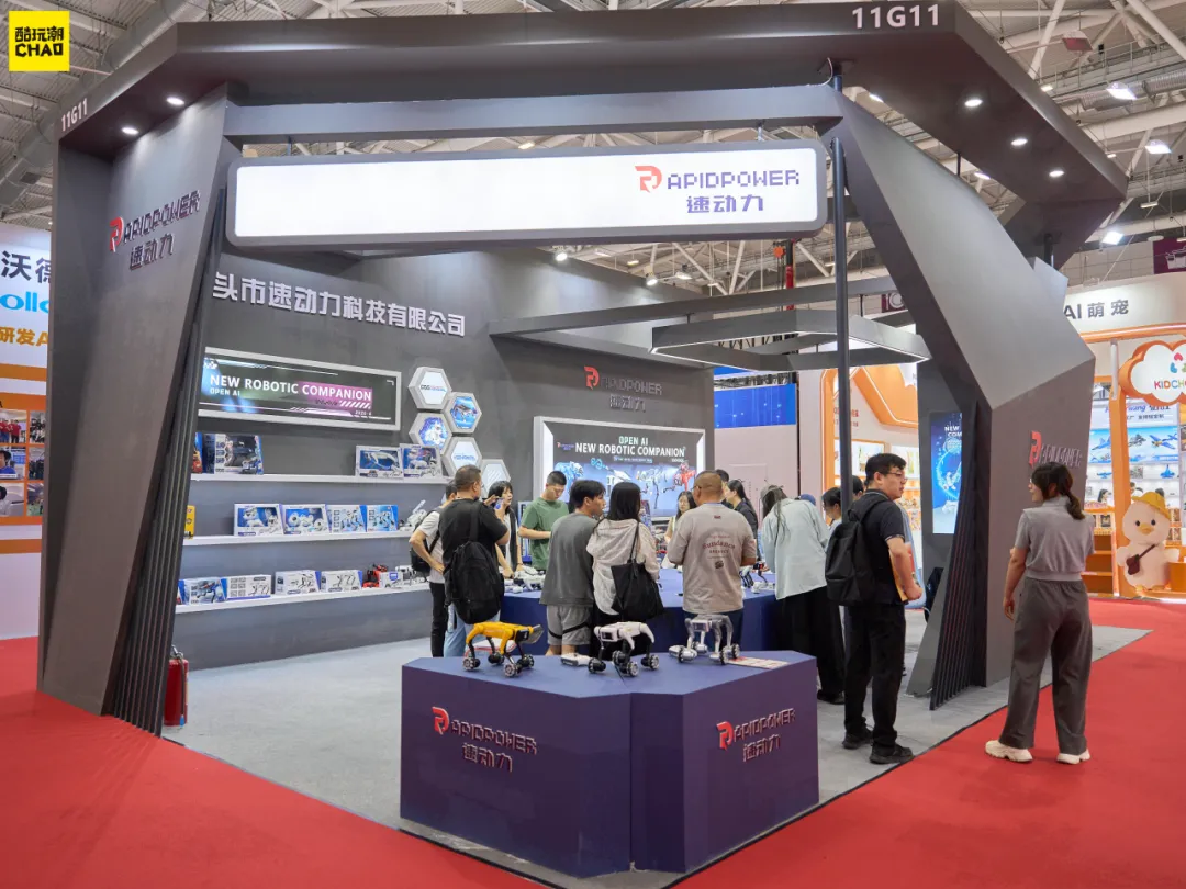 速动力的展位上,总是围着一群人。因为很少有人会拒绝亲自操作那些可爱的机器“狗狗”。