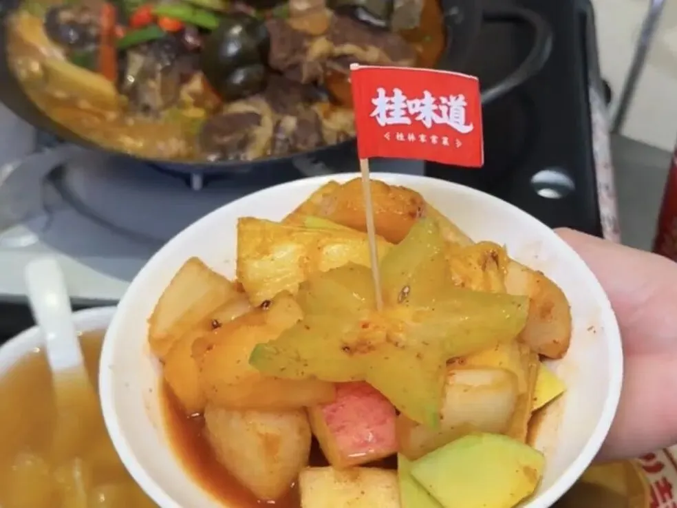 广西酸野更是不得不提。各种时令水果和蔬菜,用独特配方腌制,酸甜开胃。入口先是酸味刺激味蕾,接着是水果的清甜,清爽解腻,吃完整个人都精神了。