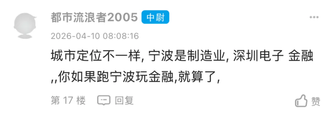 @都市流浪者2005 分析得比较客观,点出了核心:深圳的互联网、金融产业能给到高薪,而宁波的制造业虽然稳健,但薪资天花板确实更低。