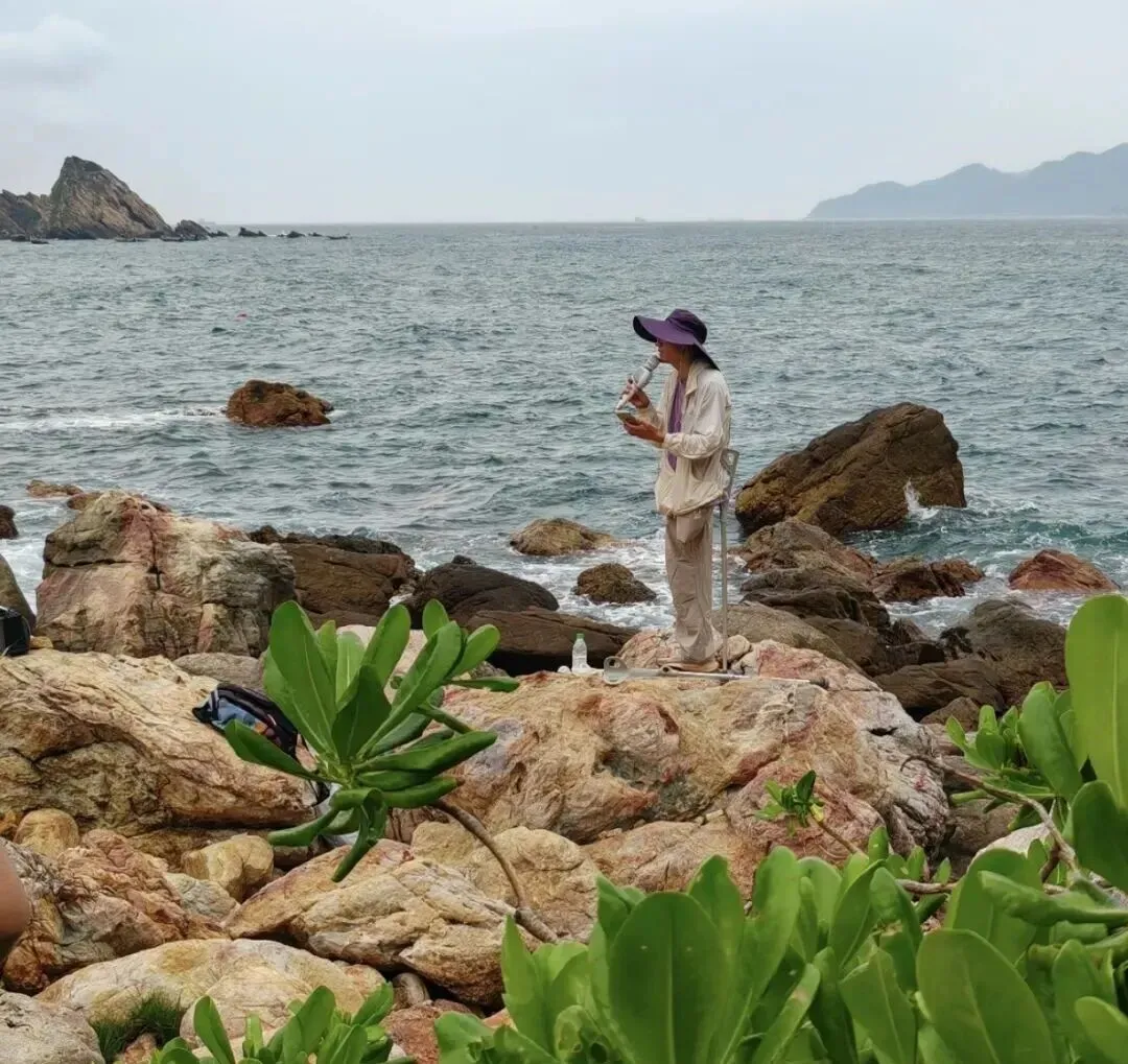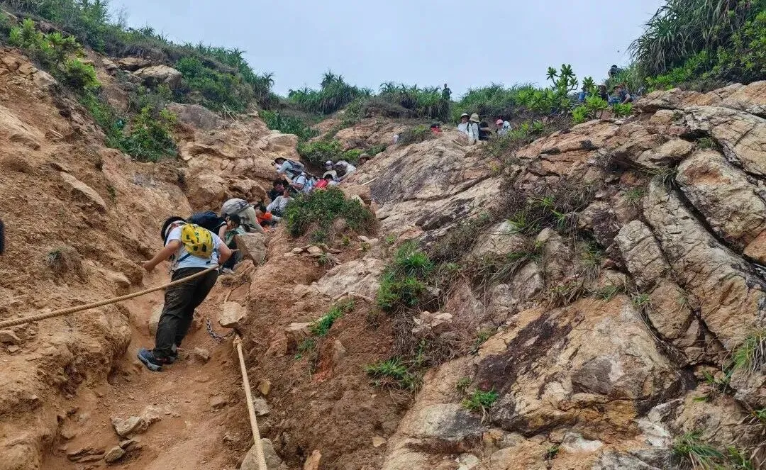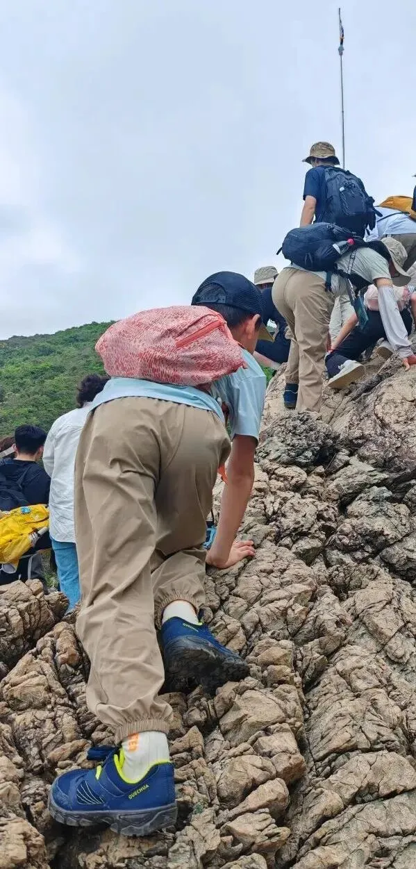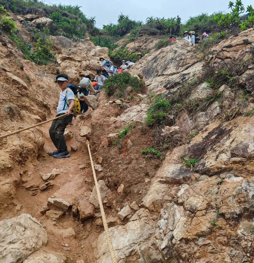 线路有礁石,有70-80度的陡坡,怕我们任何一个受伤,进退维谷,还会挡着别人,他俩比我灵活,一路上情绪高涨。