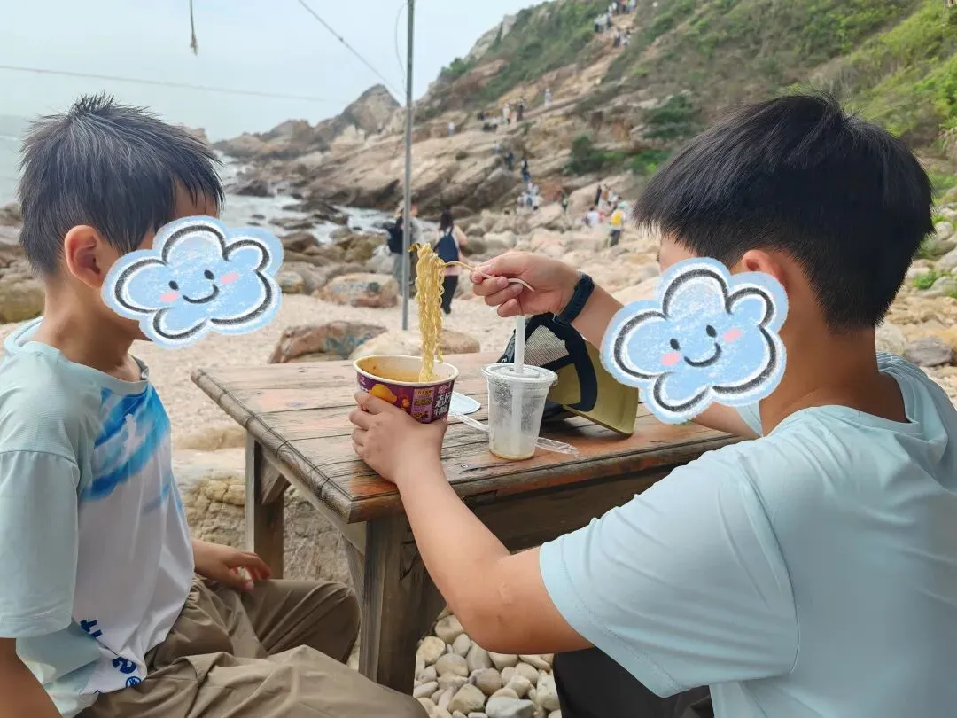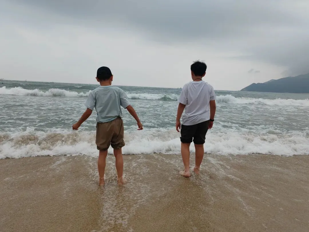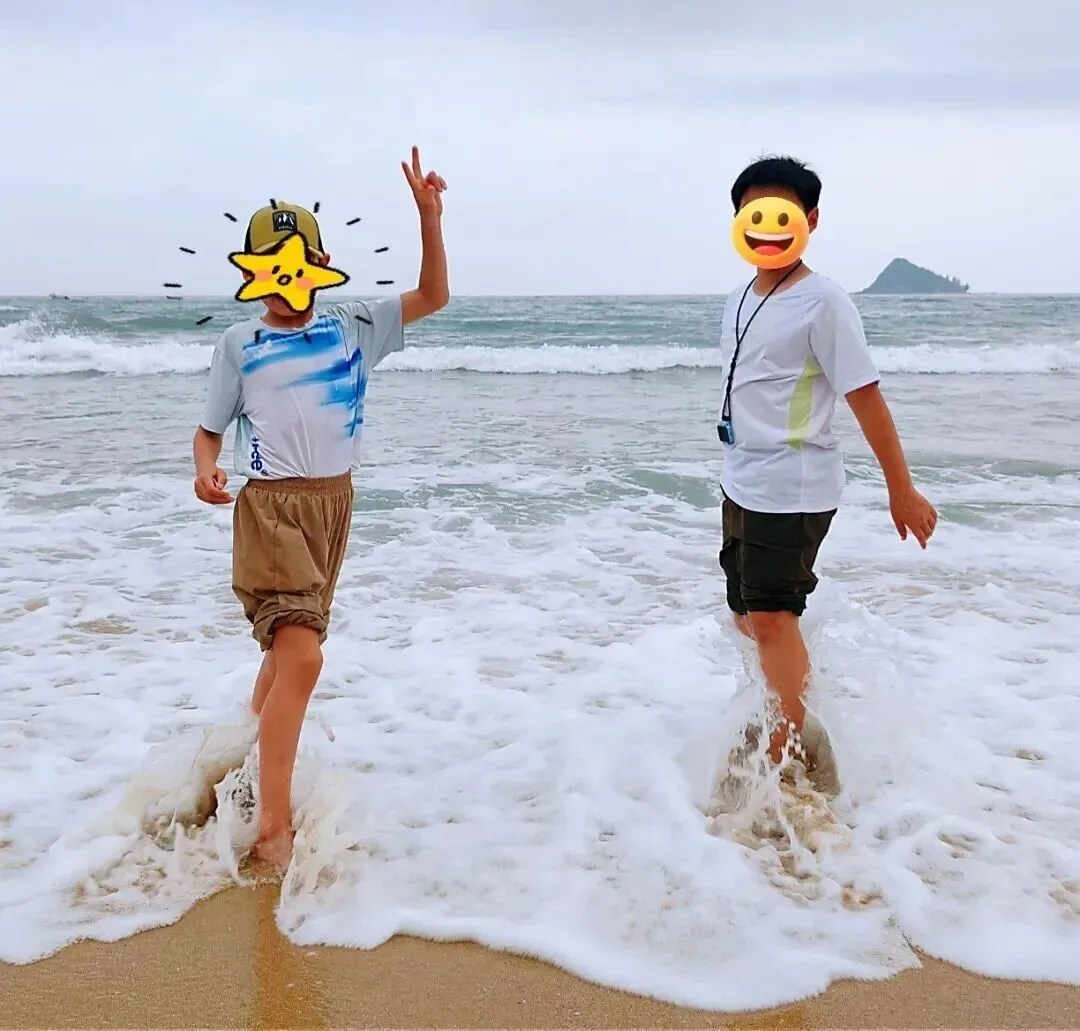 回来的路上,弟弟累得坐下就睡,哥哥一直把玩着捡来的贝壳,这次惊险刺激的徒步,可以让他们回味很久吧。