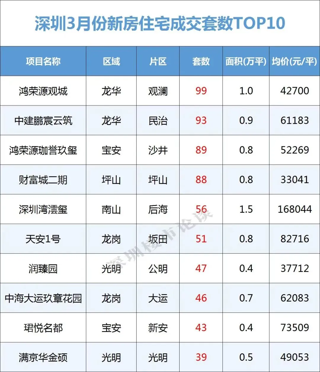 楼市里唯一不会骗人的,只有真金白银堆出来的成交量。这份3月深圳新房住宅成交套数TOP10榜单,把深圳楼市的真实底色,扒得一干二净。