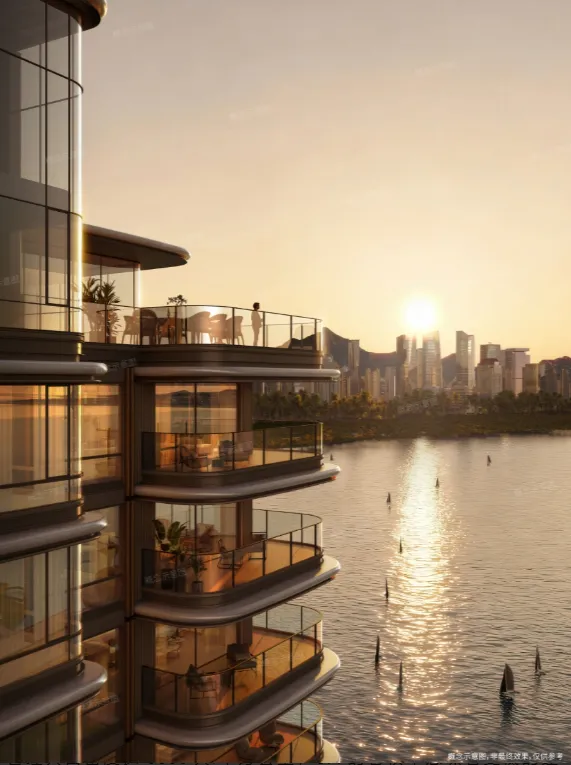 在这条超级岸线上,前海湾内湾的稀缺性愈发凸显。与深圳湾的外湾形态不同,前海湾的内湾构造,海面平静、风浪柔和,被城市配套与自然生态紧密环抱,成为核心CBD中难得的宜居之地。而深圳观潮,便落子于这内湾核心,距海岸线仅约300米,东南向头排瞰海且无遮挡,北接城市成熟界面,西与腾讯企鹅岛隔海相望,成为前海湾从“深圳的湾区”迈向“世界的岸线”的直接见证者与价值承载者。在深圳核心岸线住宅用地日益稀缺的背景下,这样的地块禀赋,既是时代的馈赠,更是城市价值的更优体现。