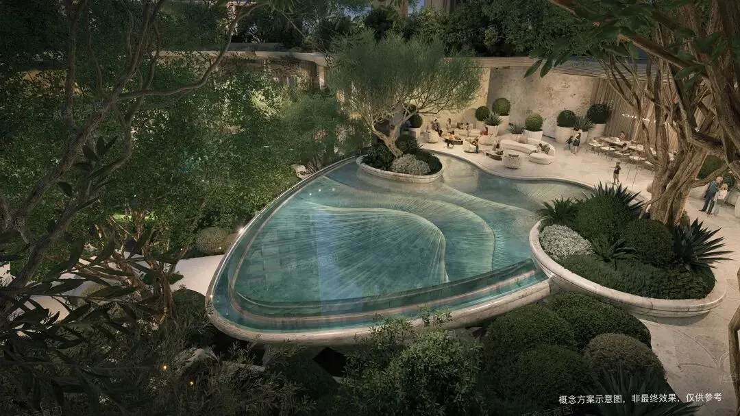 二层游园,专为儿童打造的约170平悬浮式星光戏水池,用蓝水晶天然石材铺底,远望悬浮半空如珍贵的蓝宝石。约1000㎡全龄儿童乐园自然探索乐园与戏水池无缝衔接,共同打造共同构筑亲子成长天地。