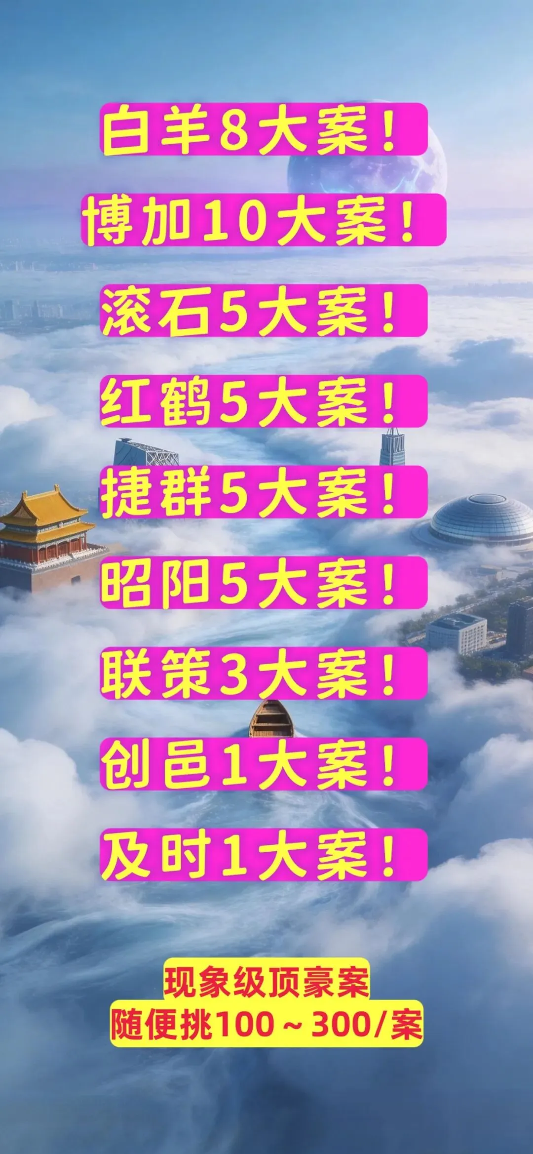 白羊8大案!博加10大案!滚石5大案!红鹤5大案!捷群5大案!昭阳5大案!联策3大案!创邑1大案!及时1大案!