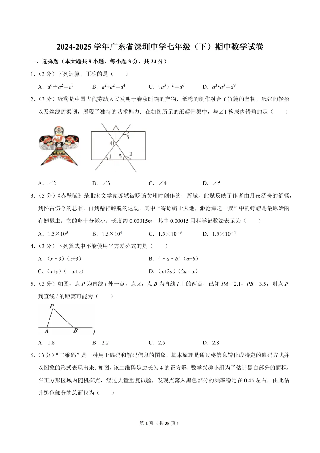 另外,姐姐也给大家特整理了深圳往年初一二年级下学期期中真题,有需要卷子练练手的,可以扫码免费领取真题~