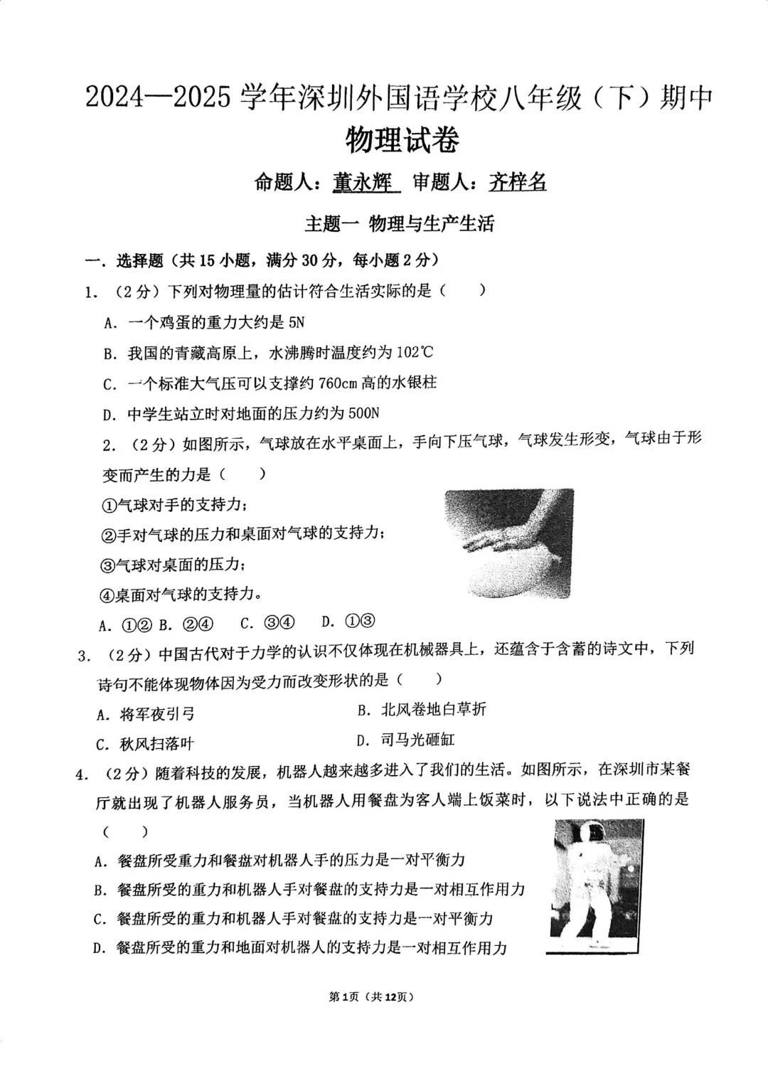 福田区初一二年级期中安排