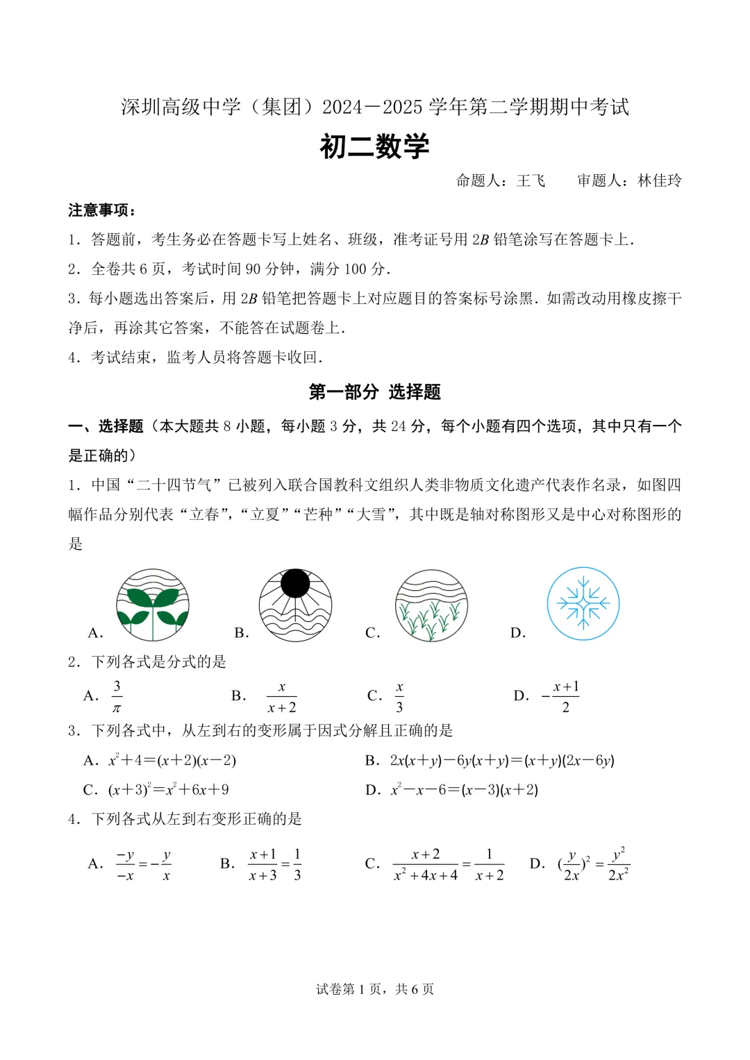 深高级东校区初二年级期中考试将会在5月7日左右进行,以下是数学考试的时间及命题范围: