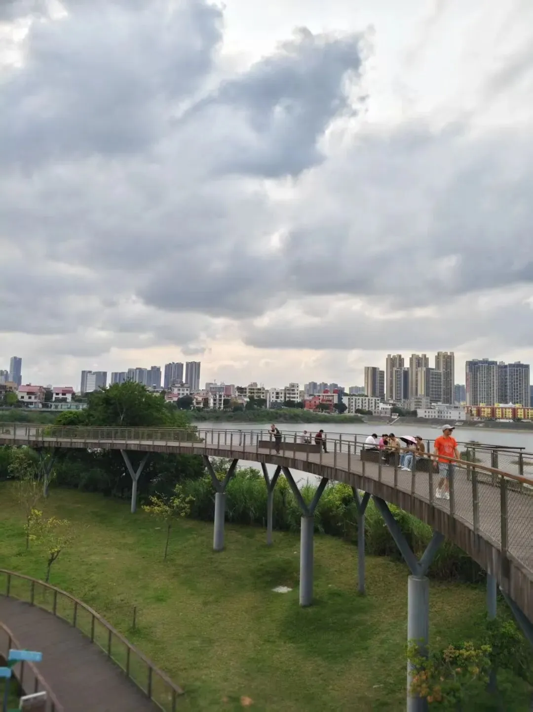 整个碧道全程平缓好走,没有陡峭的台阶,没有难走的土路,不管是独自放空散步,和伴侣并肩闲逛,还是带着老人慢慢溜达,都完全不累,沿途设有观景台和休息亭,走累了就坐下来,看着水面的山影倒影,看着云慢慢飘,什么都不用想,就是最难得的松弛。