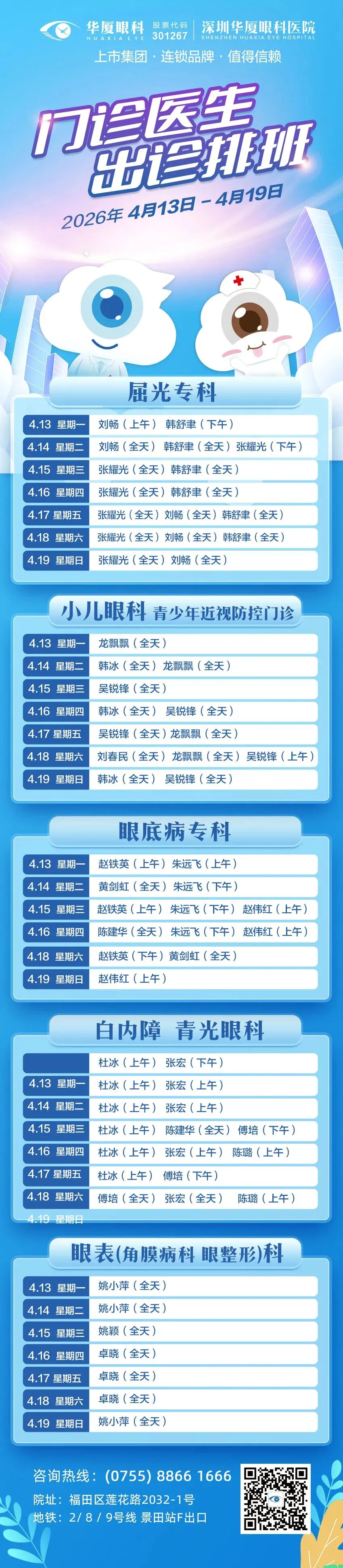 深圳华厦眼科医院4月13日——4月19日专家排班