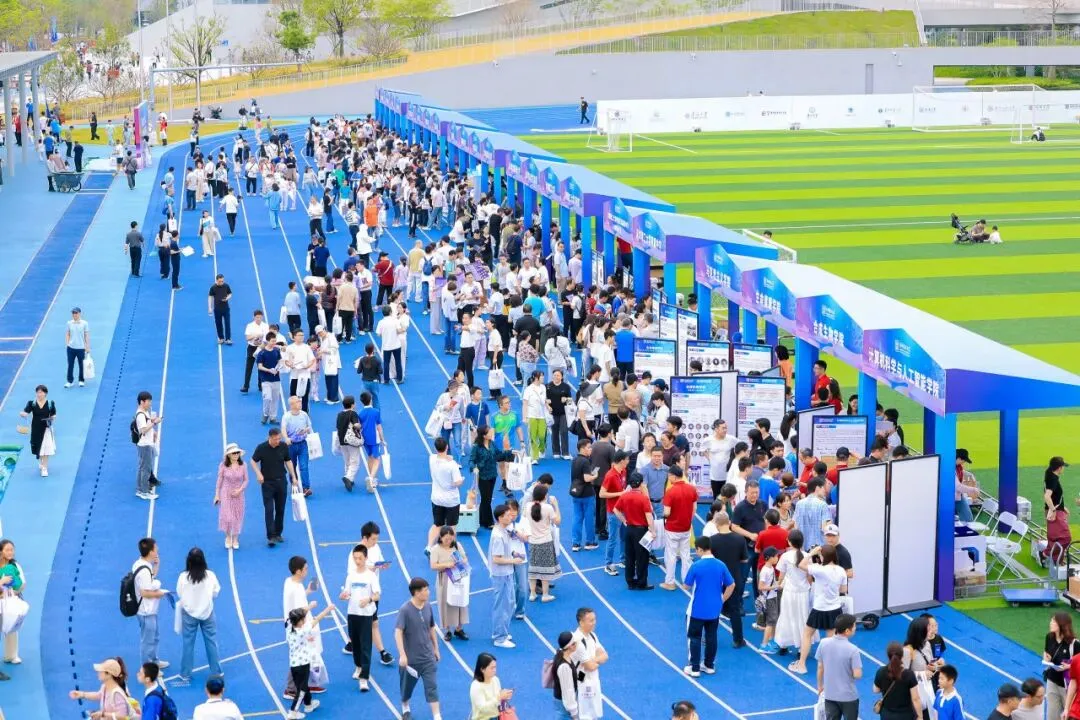 在体育场核心展位,学院通过图文展示及答疑解惑的互动体验,生动呈现了合成生物学的前沿应用与发展前景,吸引了众多来访者驻足交流。