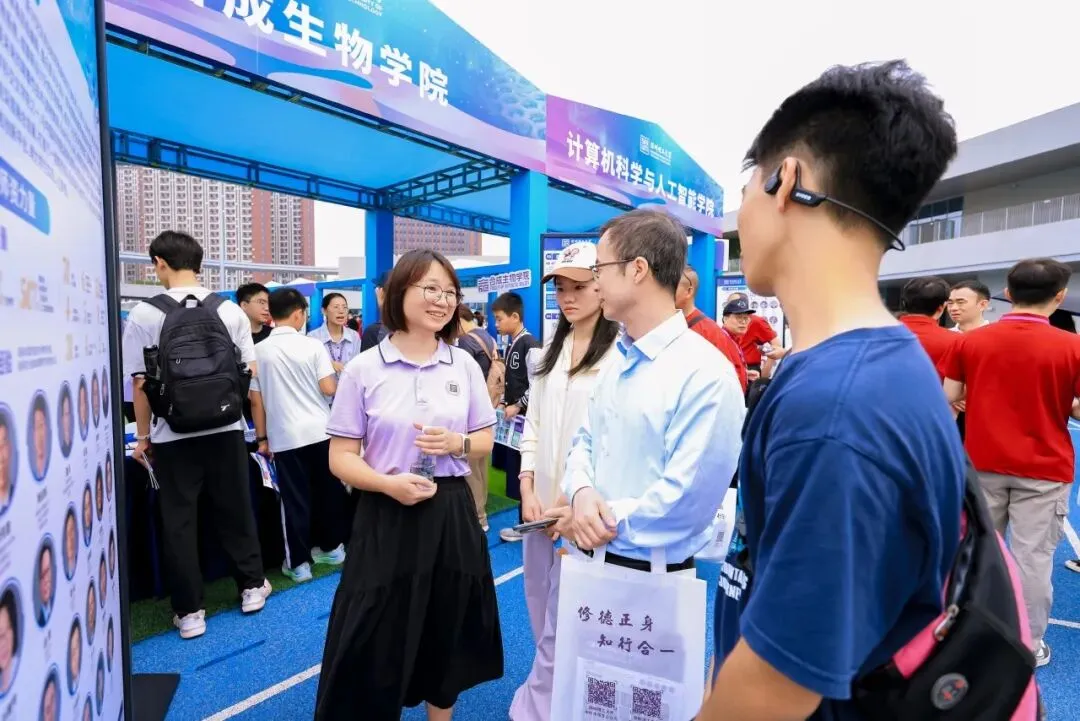 4月11日,深圳理工大学2026年首场校园开放日顺利举行,线上线下超3万人共赴这场科创与育人之约。合成生物学院作为深圳理工首批建设的七大学科交叉学院之一,以其鲜明的学科特色和前沿的育人理念,吸引了众多学生、家长及社会公众的热情参与。合成生物学院精心打造的体育场点位展示、推介报告会、实验室开放参观三大活动板块,全方位、立体化地展现了合成生物学院的教学科研实力与人才培养特色,现场氛围持续高涨,咨询交流热烈。