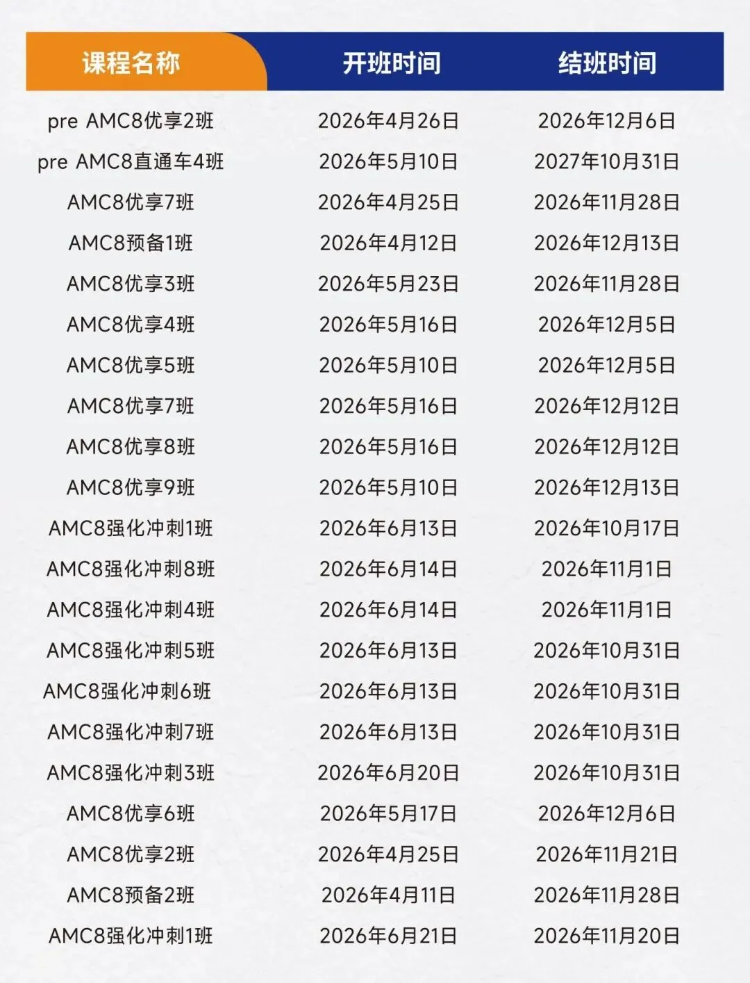 ✅ AMC8优享班:适合小学6年级至初一、基础扎实想提分的同学。