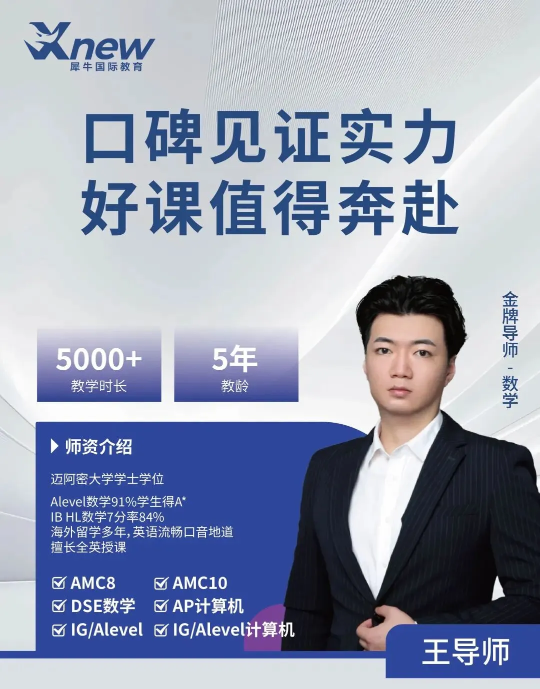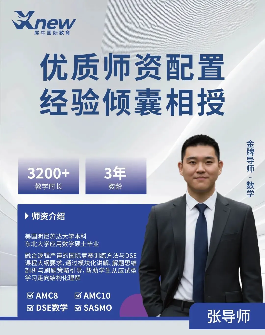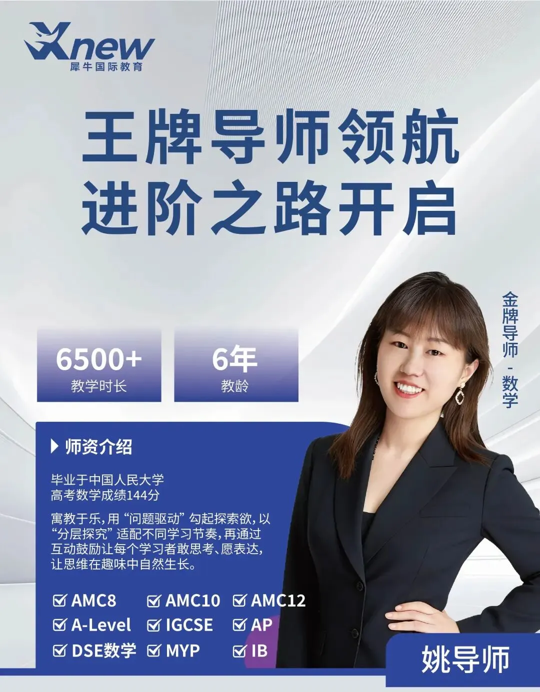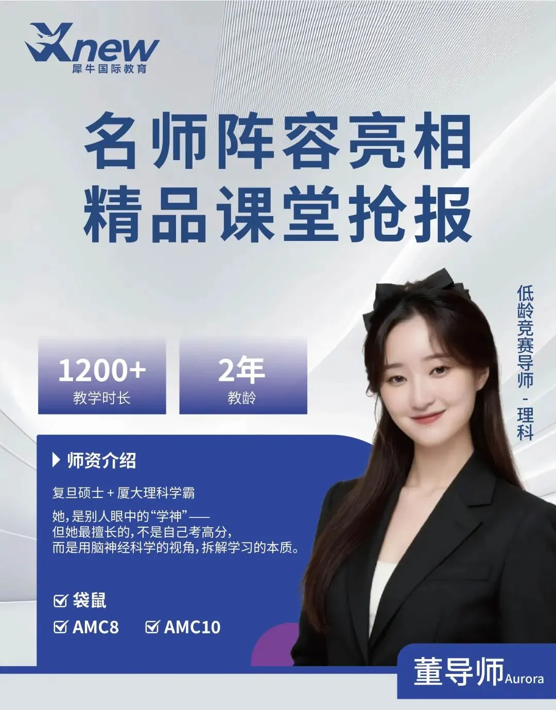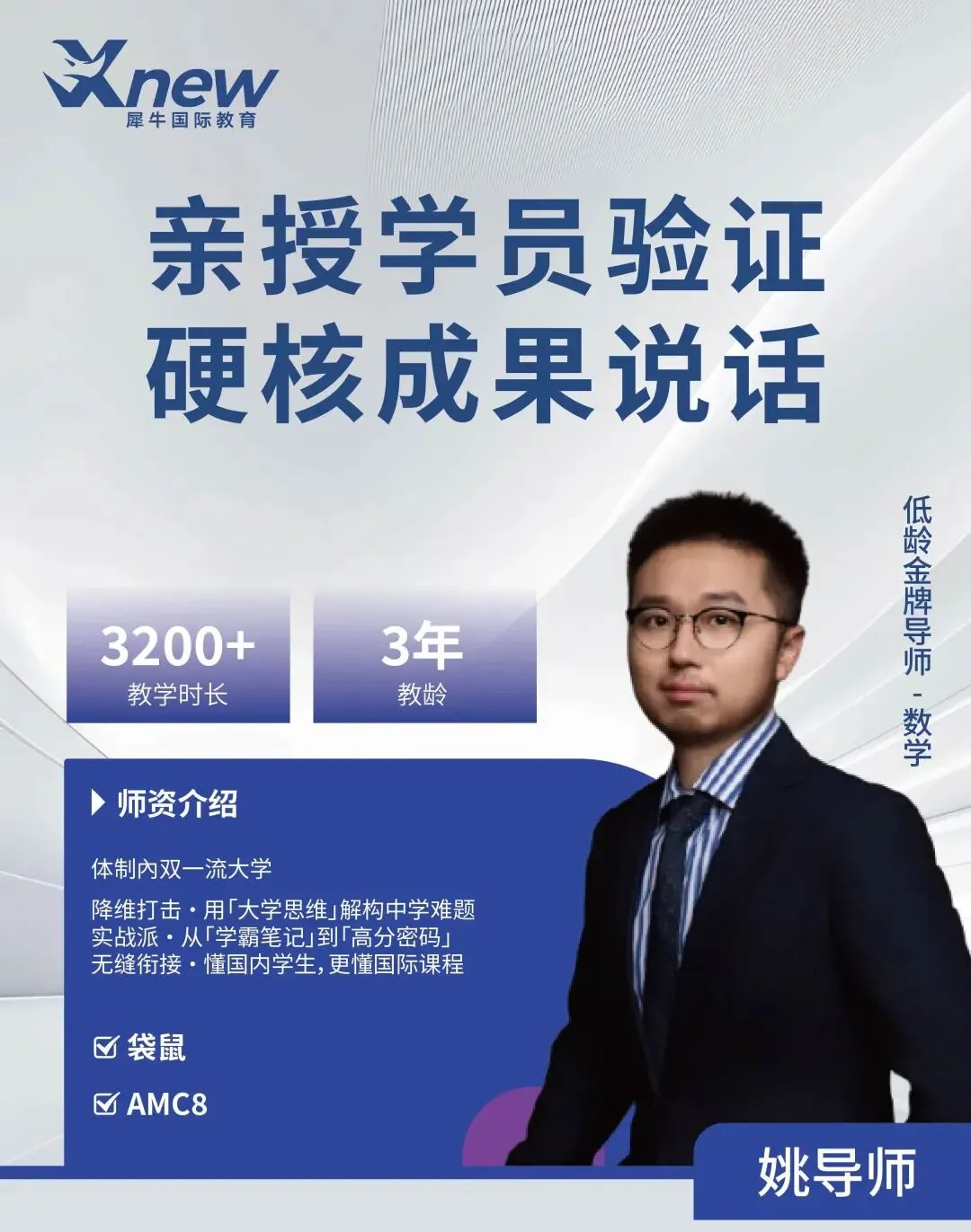 犀牛 AMC 的老师都是复旦、人大、华威等海内外名校出身,数学功底扎实,吃透 AMC8 竞赛考点,教得准、讲得透。
