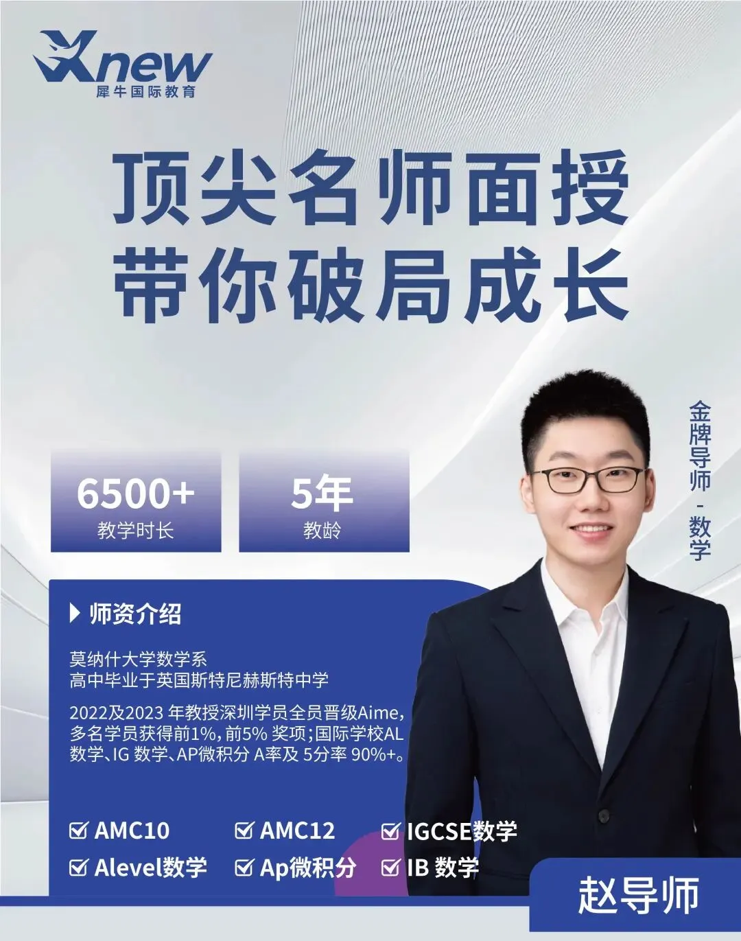 犀牛专注于AMC8培训多年,授课老师均来自于海内外知名高校,具备多年AMC8专项授课经验,深谙竞赛考点规律与深圳学子学习特点,更有丰富冲奖辅导经验加持,能够更好的助力孩子冲刺前1%。