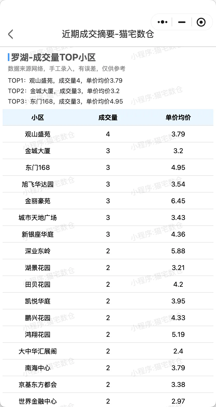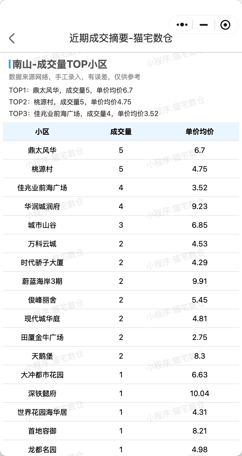 TOP3:佳兆业前海广场,成交量4,单价均价3.52