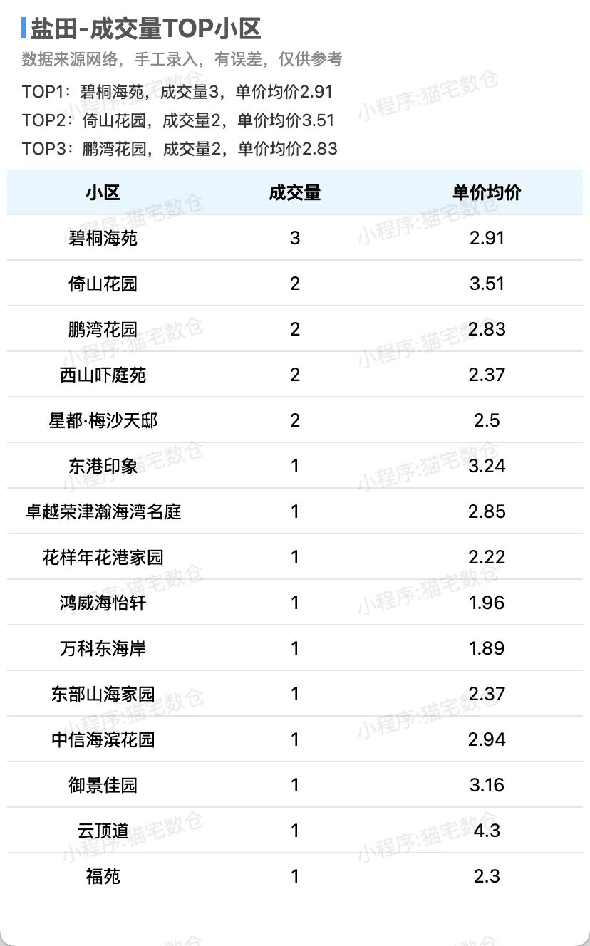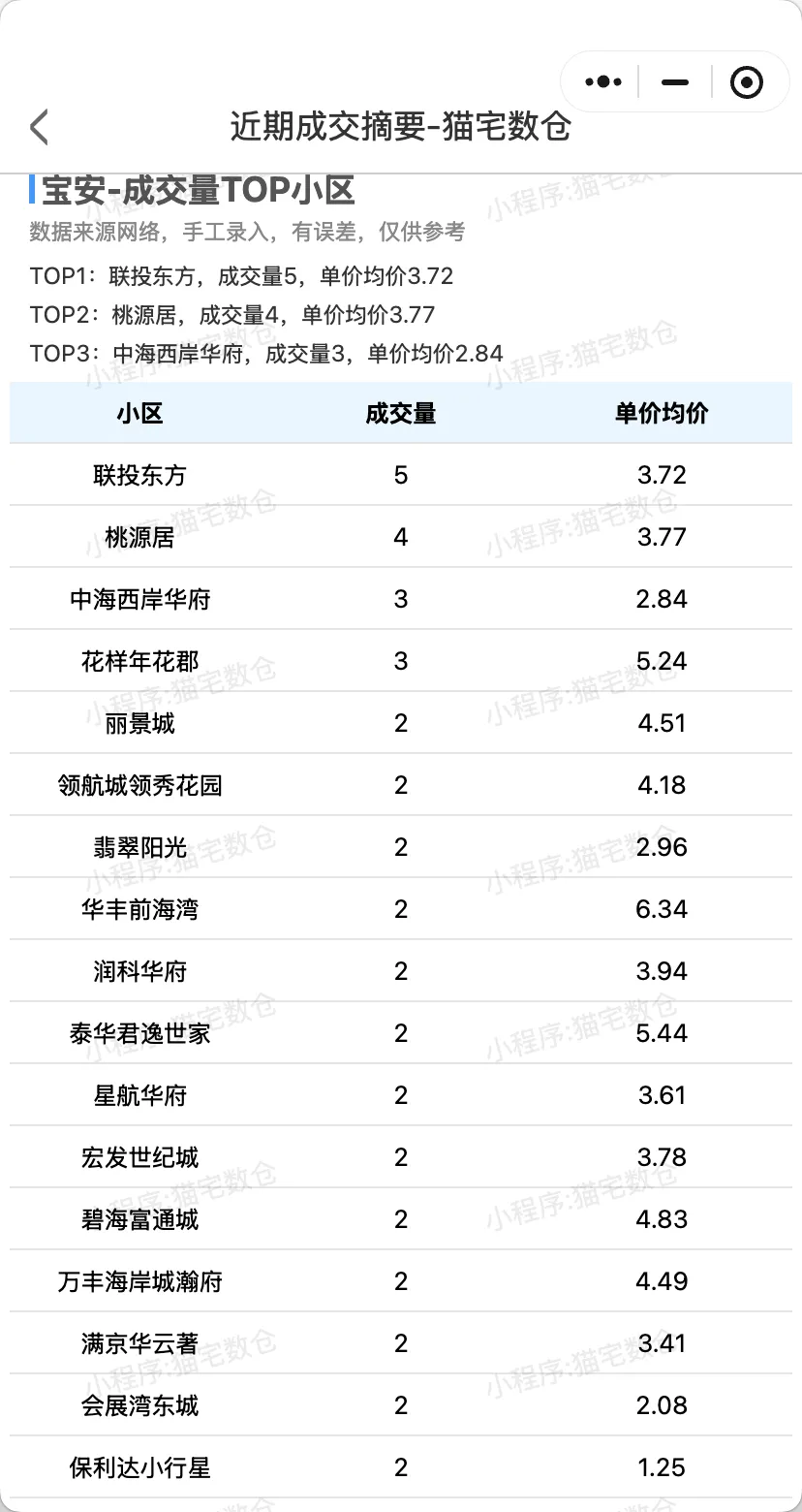 TOP3:中海西岸华府,成交量3,单价均价2.84