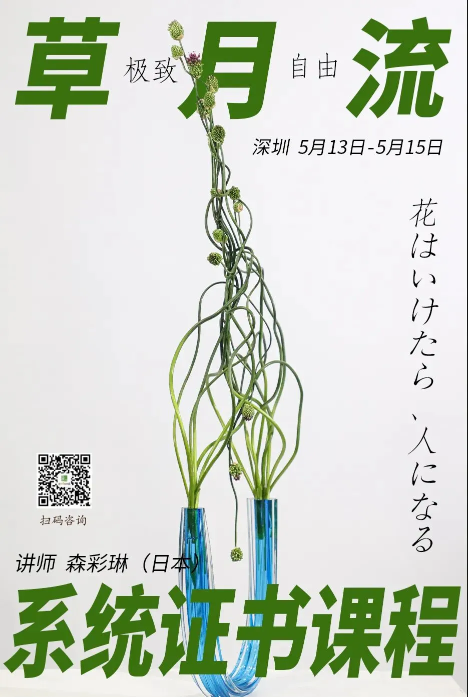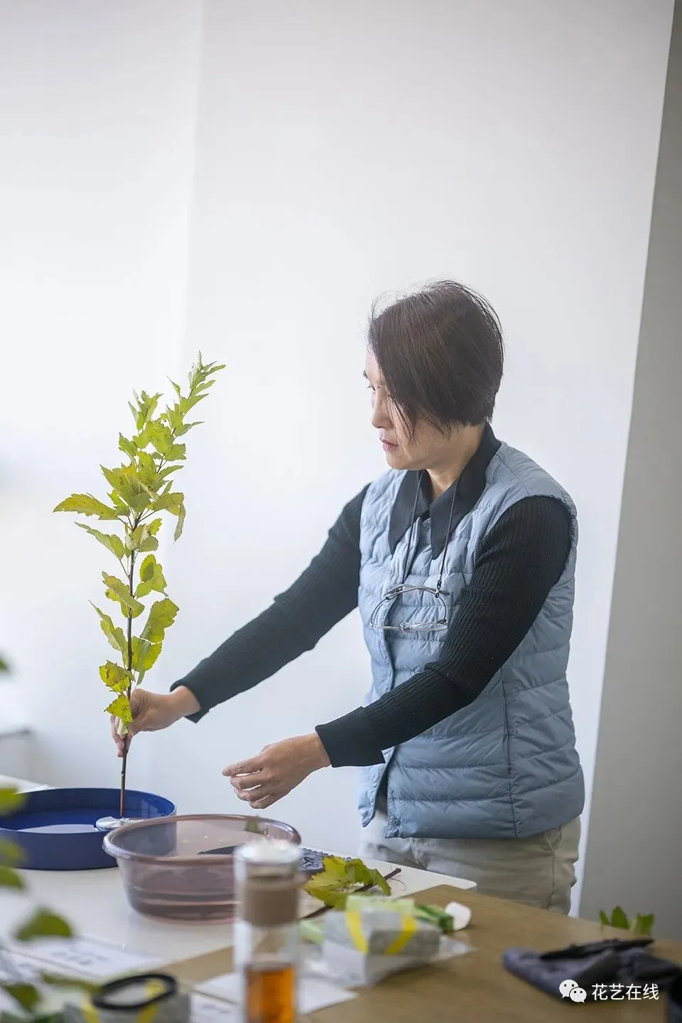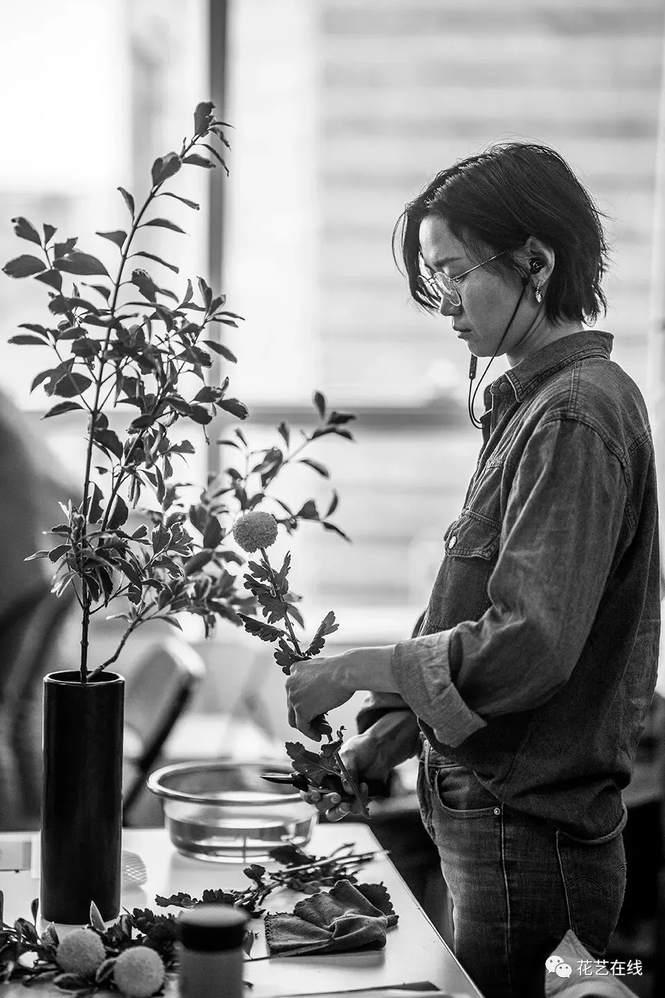 在森彩琳老师的课堂上,基础的重要性被反复强调。想要了解草月,花道的修行还是得一招一式循序渐进。通过基础花型的反复练习,对比例和技法有了深刻的理解,感知各种花材,熟练使用工具,这些基础练习的积累,才能更好的设计自己想要的作品。