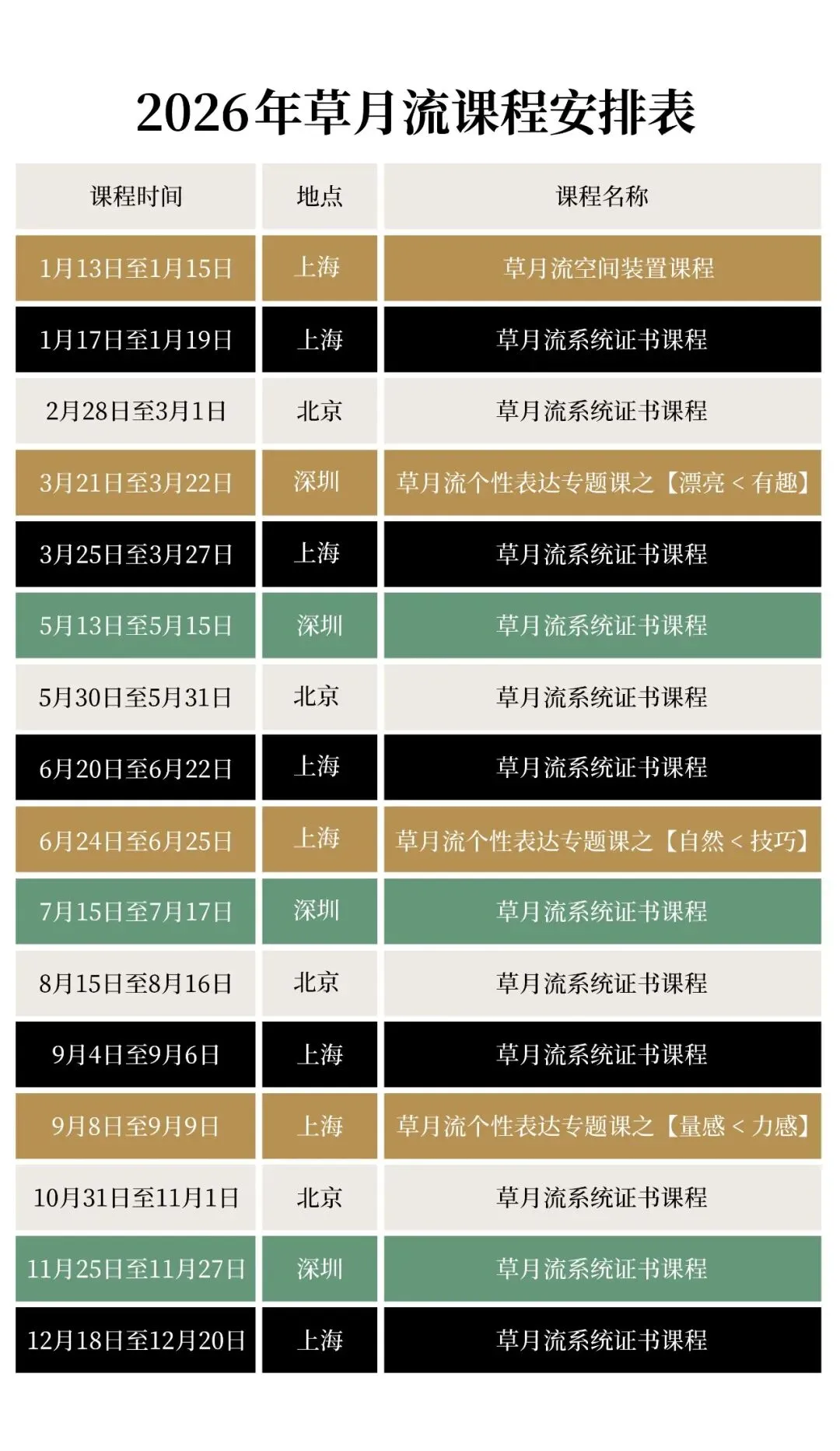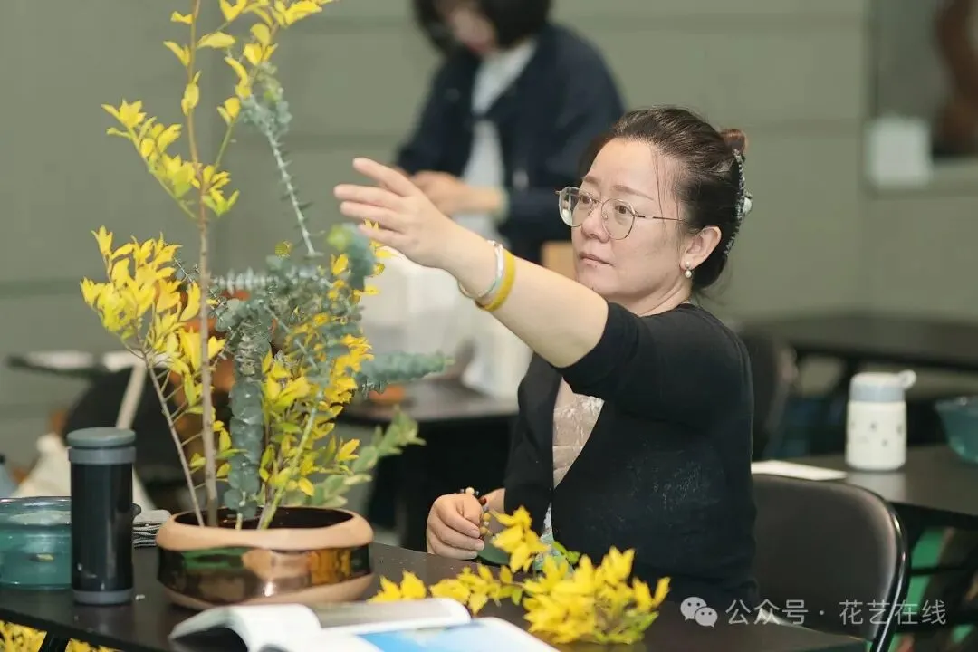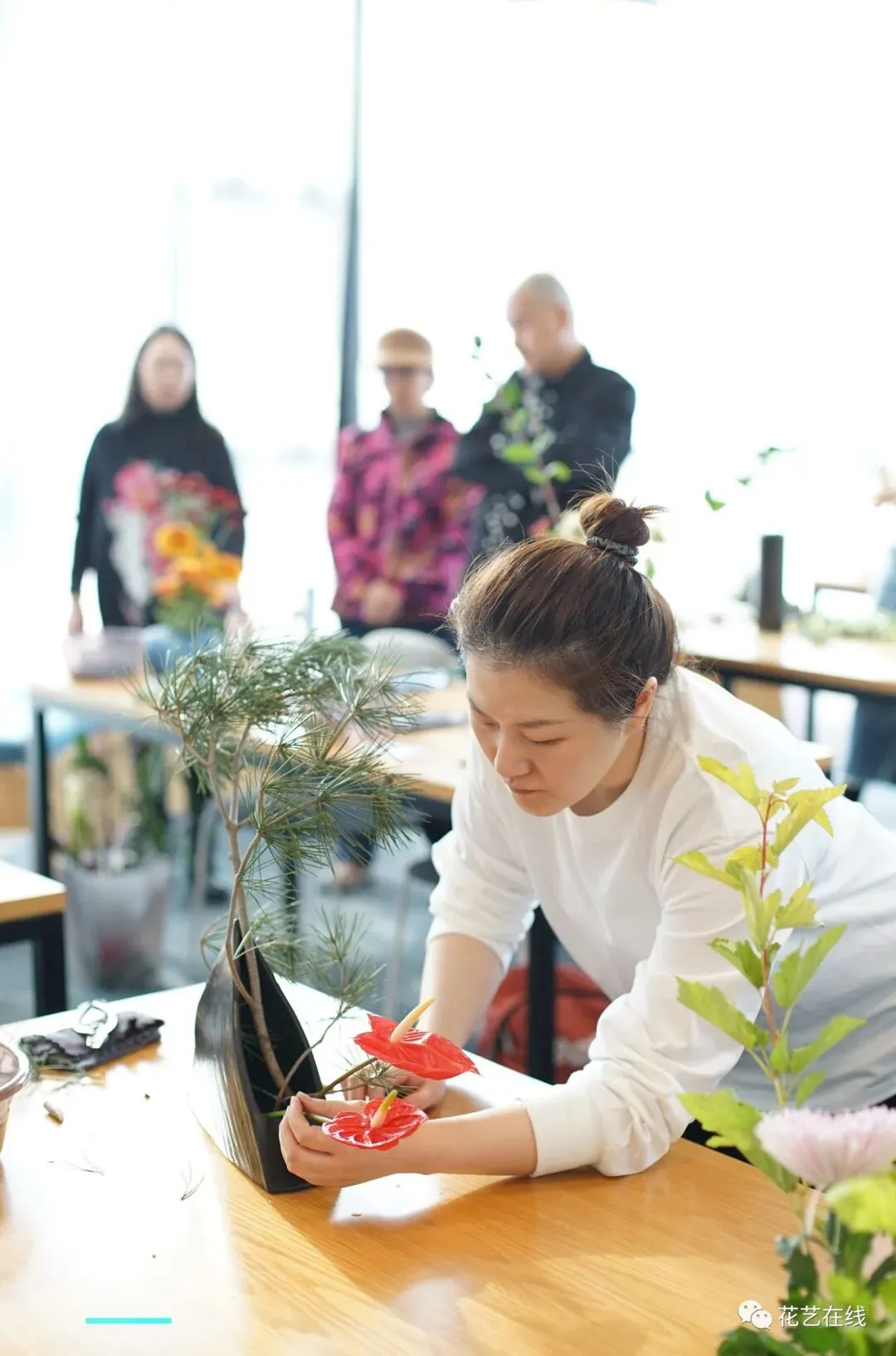 花艺在线草月课程设置是混班式,不同级别的学员在一起研习,在这样的教室里,高阶学员可以不断温习基础,为将来做讲师做好储备;初级学员也可以看到高阶的自由花作品,丰富创意,激励自己努力向前学习。
