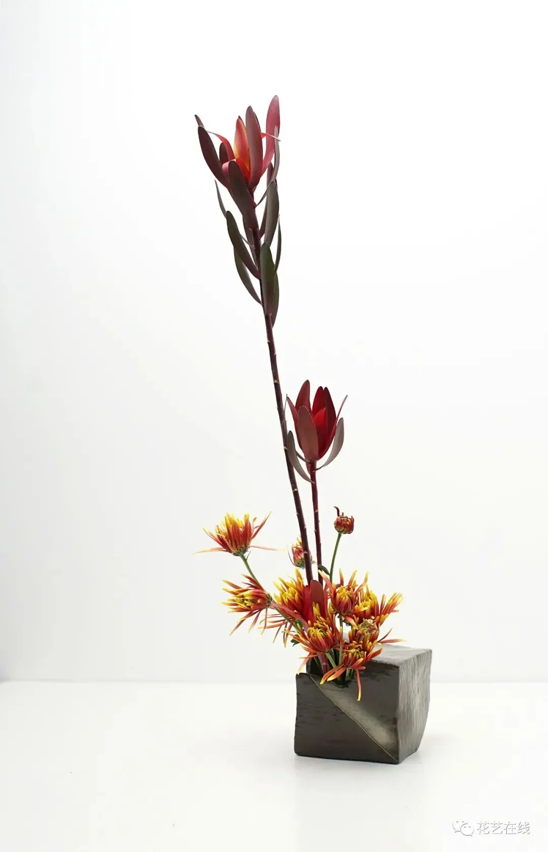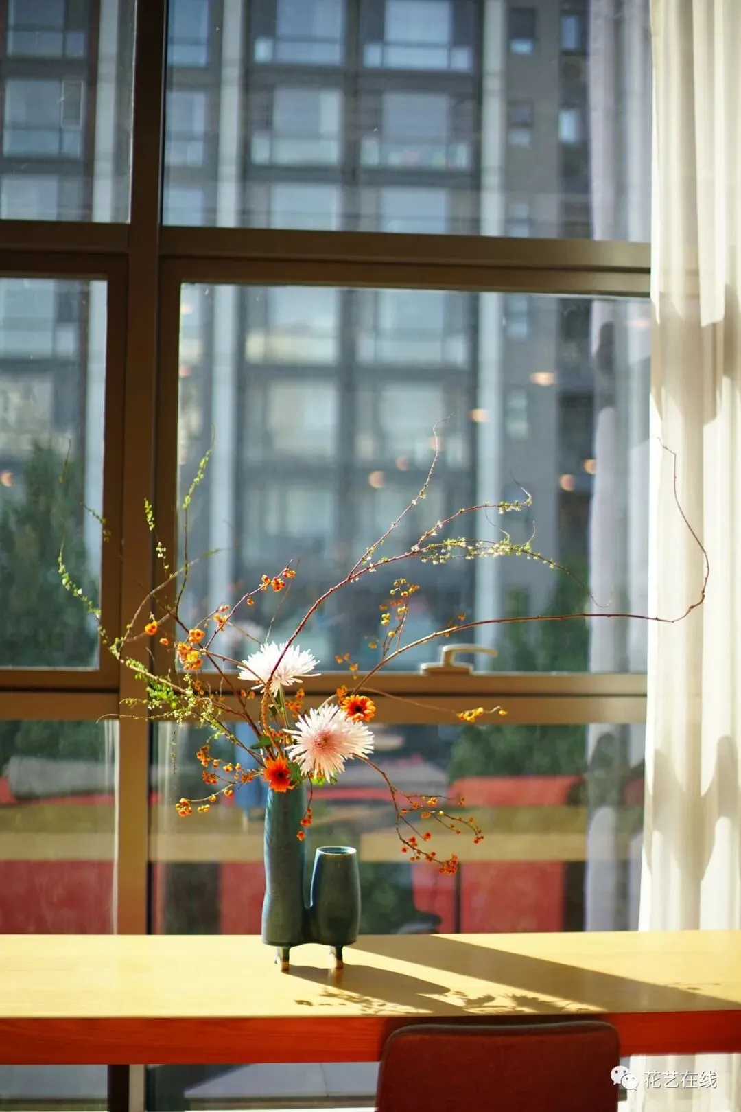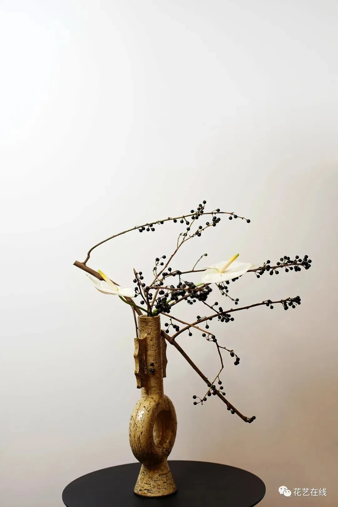 草月流花道更加强调创作者本人参与到其中的设计之美,而不仅是植物素材的自然之美。