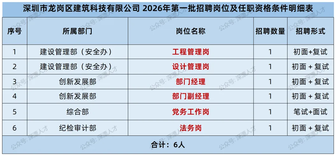 附件1:《深圳市龙岗区建筑科技有限公司2026年第一批招聘岗位及任职资格条件明细表》