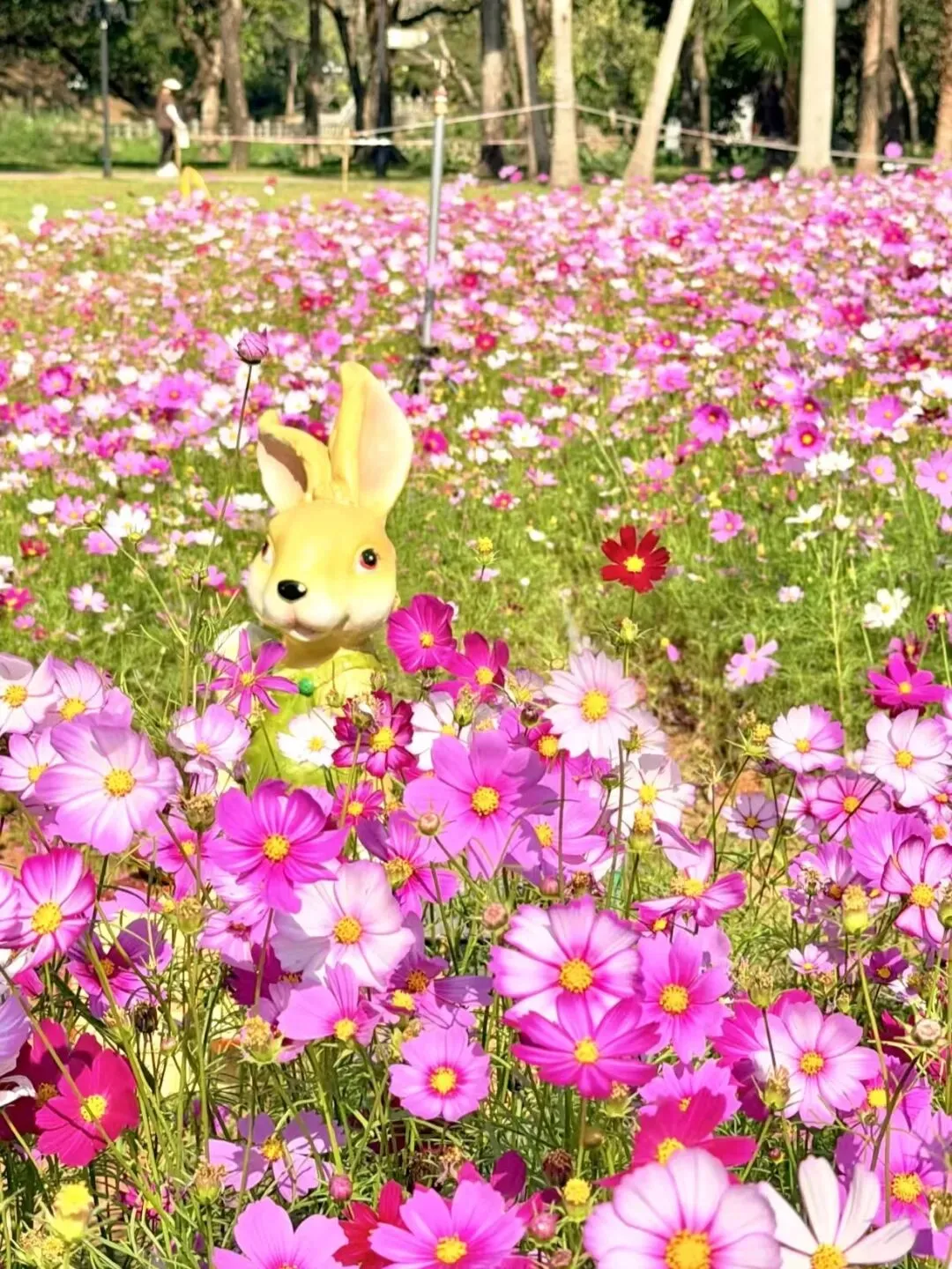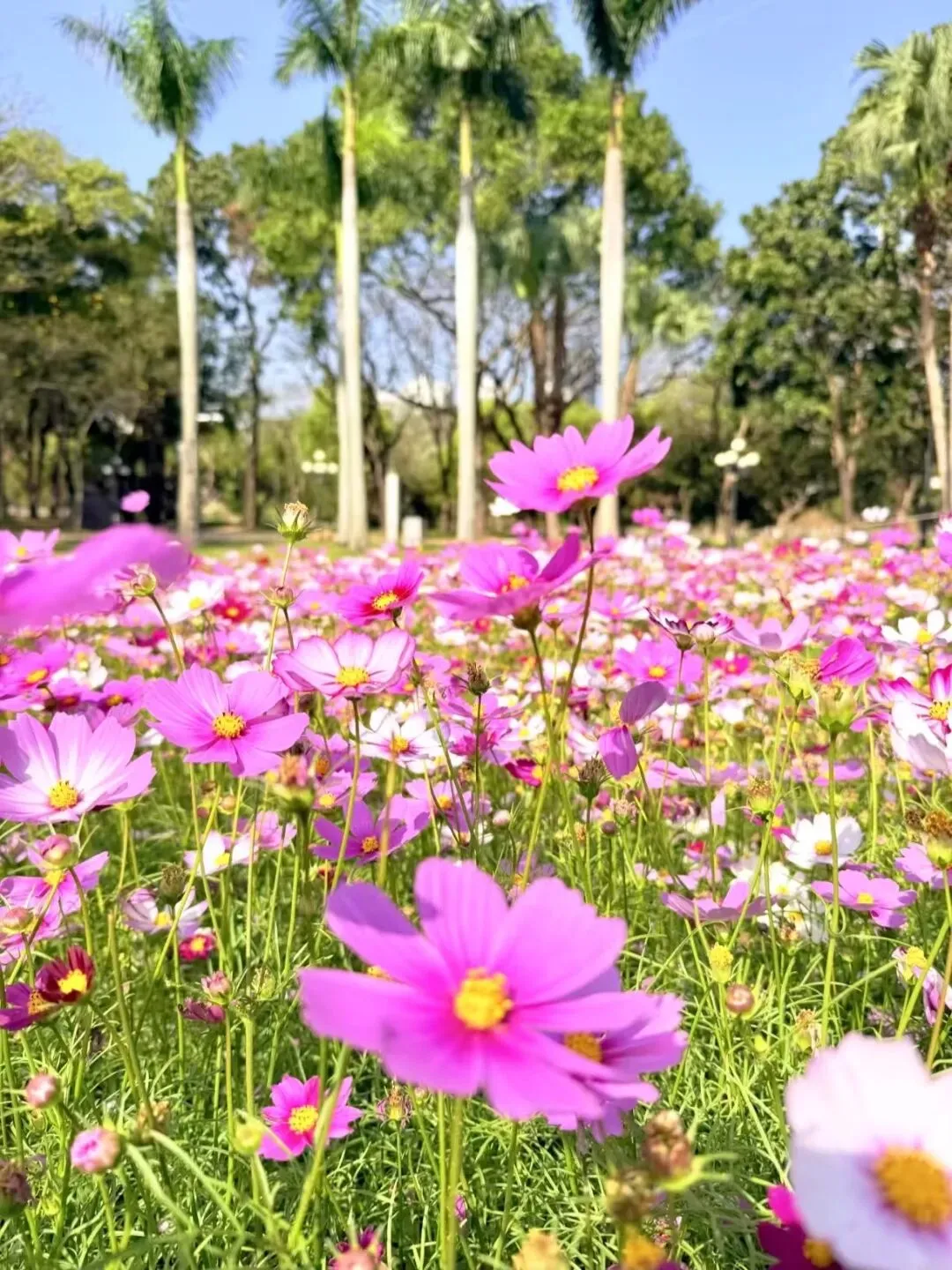注意!粉色系进入告别倒计时。 1200平方米的格桑花海正在东湖公园做最后的谢幕演出——这大概是你四月中旬能抓到的最壮观的粉色了。