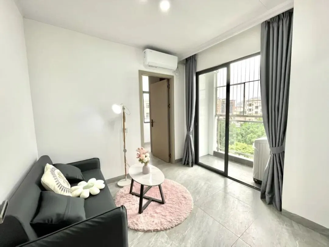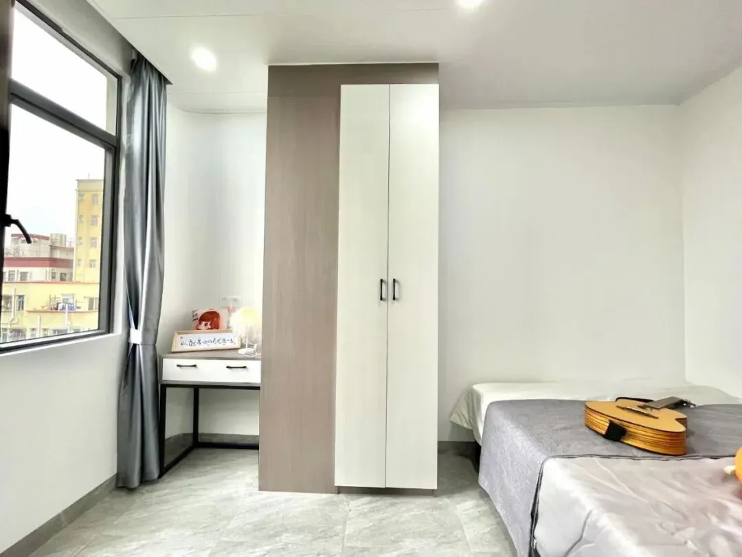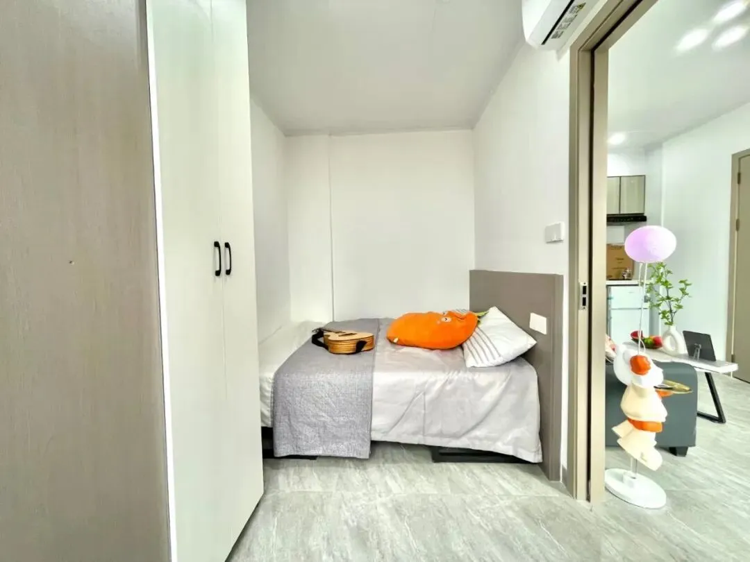 配置:房子为精装类,洗衣机,空调,Wi-Fi,热水器,衣柜,柜子,阳台,冰箱,桌子,床等,干湿分离浴间,可煮饭,家具几乎全新....无论是单间,一房一厅空间都很大,适合两人居住,尤其是情侣。拎包就能住,省超多置办成本!