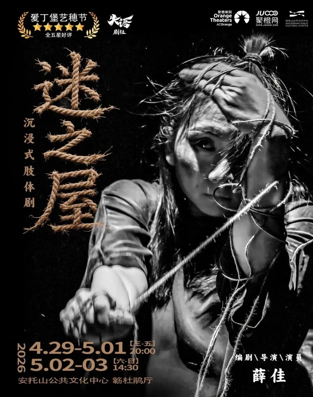 作品介绍:一部演了十年、不断生长的实验肢体剧。打破传统剧场边界,拒绝固定形态,曾走进美术馆、码头、防空洞、教堂、剧场,每一场都是与当下空间和观众共同完成的唯一艺术事件。获爱丁堡艺穗节全五星推荐剧目。