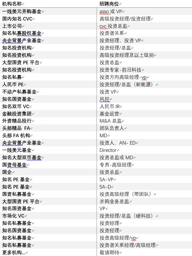 3.协助上级推进投资者拓展与募资推进。开拓高净值个人、家族办公室、上市公司、产业资本、金融机构、政府引导基金等 LP 资源,建立并维护多元化募资渠道。