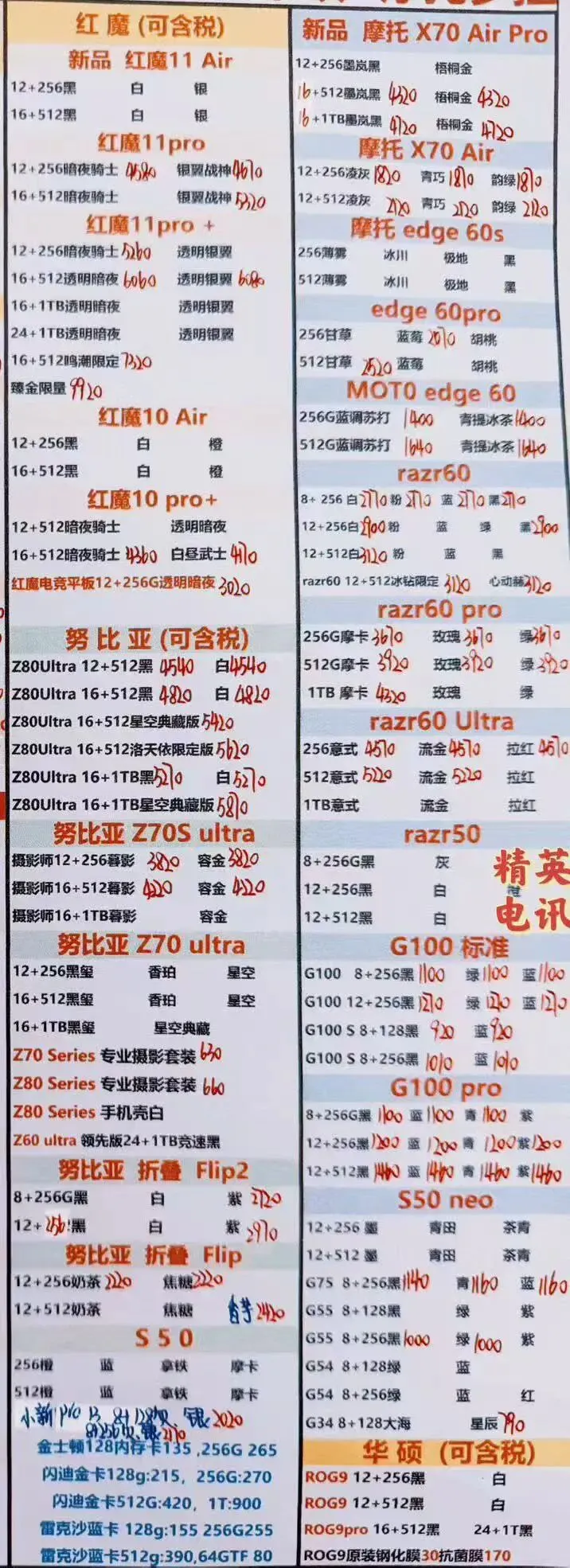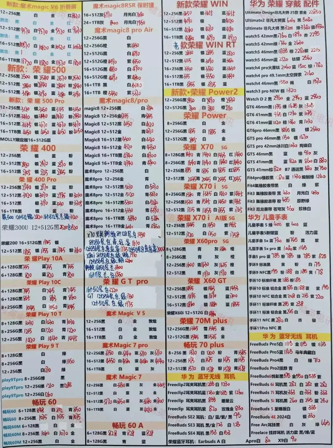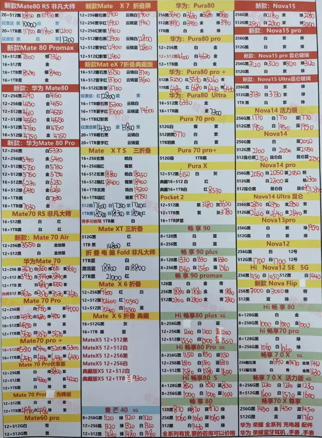 最新全新原封国行华为荣耀小米一加红魔等手机批发报价
