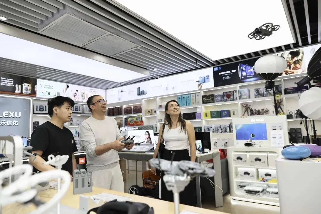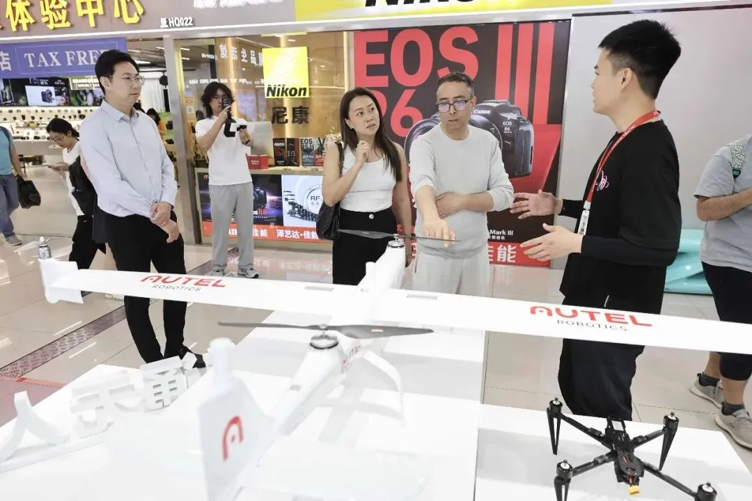 随后,卡雷姆走进泽艺达影像体验中心,感受了华强北深耕影像器材领域的专业底蕴;并在AUTEL道通智能门店,详细了解适用于测绘、巡检等领域的行业级无人机。从消费级航拍到工业级应用,深圳低空经济的硬核实力让他看到了“中国智造”的无限可能。