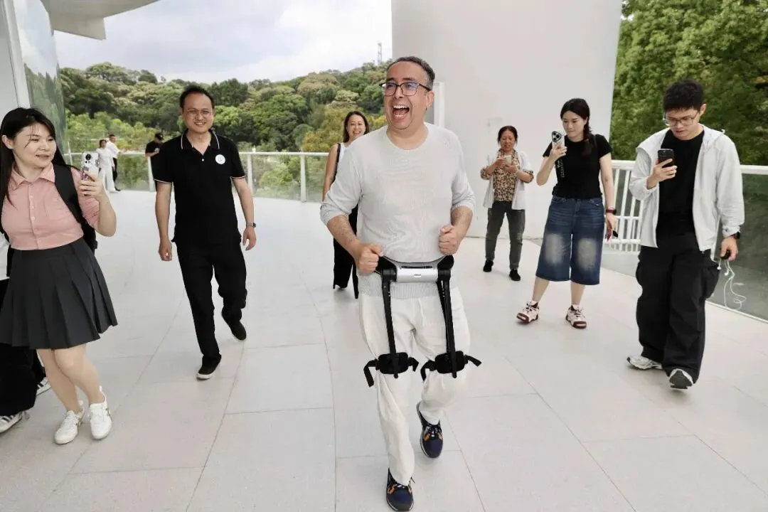 随后,卡雷姆体验了专为户外徒步打造的迈步外骨骼助行机器人,亲身解锁科技赋能出行的全新方式。体验过程中,卡雷姆反复测试行走效果,仔细感受设备的助力性能。“我想带一台回去送给我的妈妈。”卡雷姆真诚说道,表示这份来自广东智造的黑科技让他大开眼界,也让他深刻感受到中国科技创新为日常生活带来的便捷与惊喜。